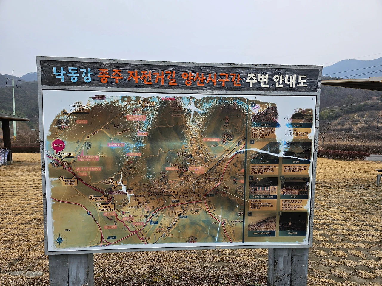 마치 고대의 보물지도라도 되는 양 해져버린 안내도. 자전거길도 생긴 지가 10년이 넘었으니 보수해야 할 시설들이 여기저기 보인다.