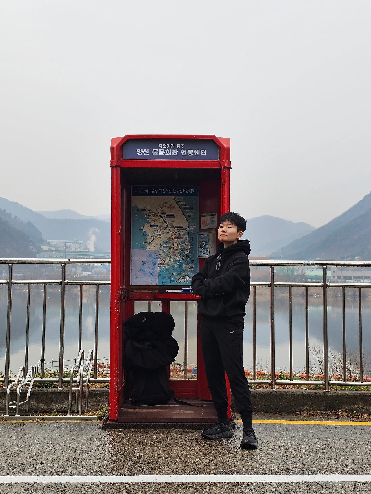 가방이 짓누르는 바람에 어깨가 너무나도 아팠다. 왼쪽 햄스트링도 끊어질 것 같았음. 바른 자세로 걸어야 한다고 스스로를 계속 다그쳤지만 힘들어서 자꾸 무너져 내렸다. 밀양까지 1.5km. 조금만 힘내자!