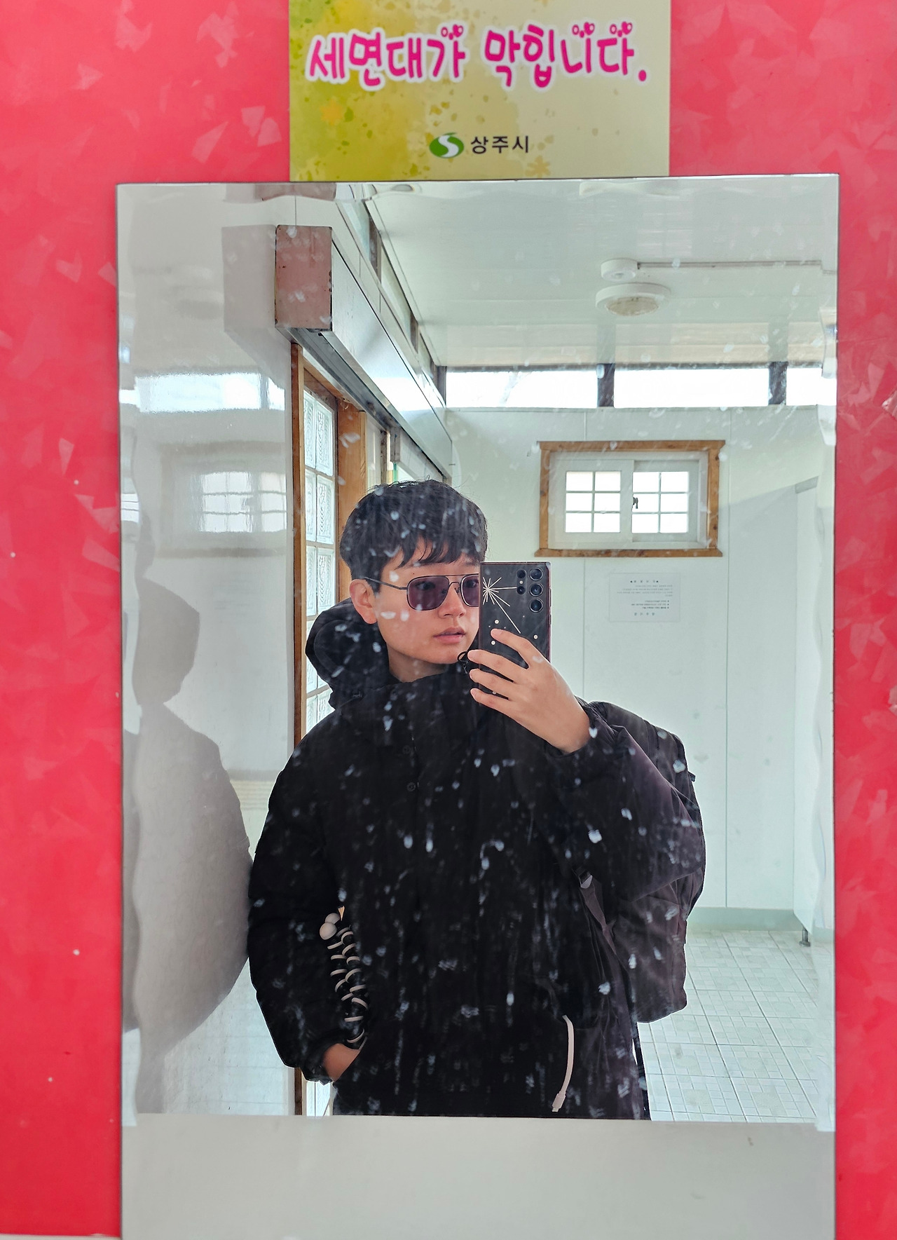바람을 하도 맞아서 빨개진 얼굴. 풀착장한 나.