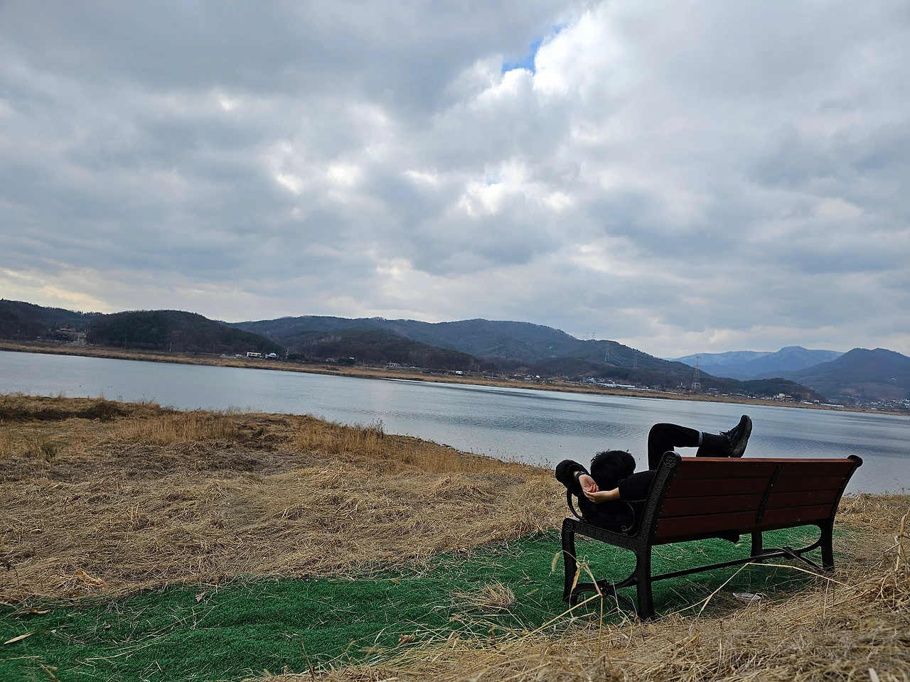 도보종주자에게 사람이 없다는 건 꽤나 큰 장점이다. 일단 국토종주길이 자전거를 위해 만들어진 길이기 때문에, 성수기에는 도보종주 자체가 위험할 수도 있다. 내 경우 라이딩하는 사람을 서너 시간에 한 명쯤 마주쳤기 때문에 걷는 데 크게 불편함이 없었다. 자전거길로 걷다가 소리가 들리면 갓길로 피해 주면 되었기에. 보는 눈이 없으니 삼각대 설치해 놓고 사진도 원하는 만큼 건질 수 있고, 피곤하면 벤치나 정자에 누워서 잠깐 눈을 붙일 수도 있고, 아주 자유로웠다.