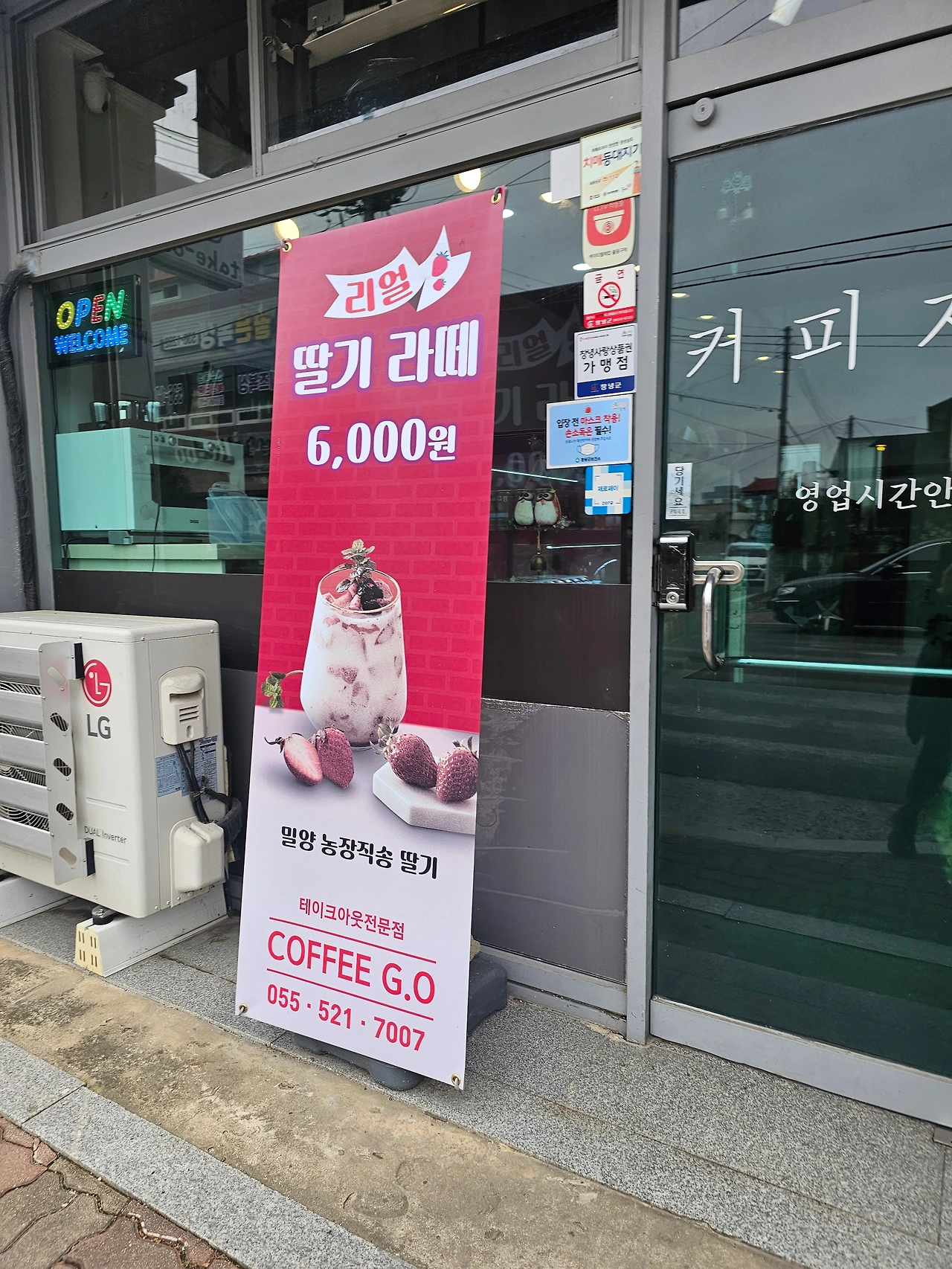 <리얼> 딸기 라떼라니! 심지어 밀양 농장직송 딸기! 먹어서 혼내주겠다는 마음으로 두근두근 설레며 들어갔는데 자그마한 가게에 독서모임이라도 하는지 사람이 가득 차서 앉을자리가 없었다. 테이크아웃을 할까 했지만 앉아있을 자리가 필요했고 밖은 쌀쌀했기에 아쉬운 마음을 안고 밖으로 나왔다.