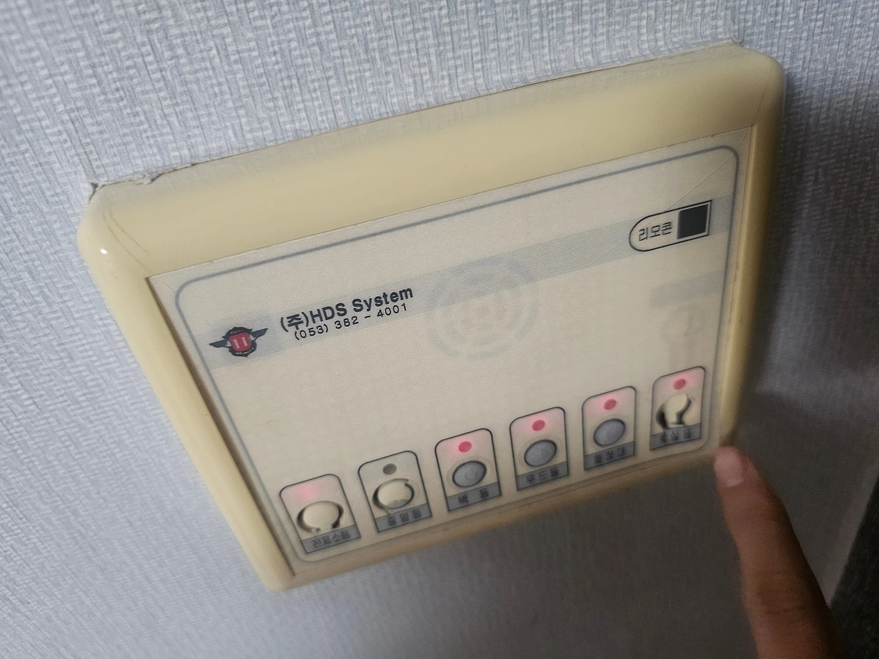 또 다른 대환장 포인트는 부서져서 손가락을 구멍에 넣어 켜고 꺼야 하는 조명 스위치였다. 욕실등 스위치만 처참하게 부서진 걸 보면 사람들이 얼마나 전기 절약을 하는지 알 수 있다(?). 왜, 그냥 켜놓고 나와도 되잖아요. 스위치 따위 동작만 하면 고치지 않겠다는 스웩 넘치는 운영원칙이 엿보인다.