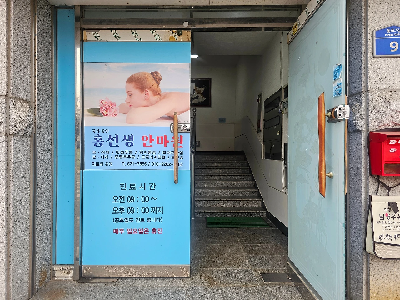 낮에 왔던 안마원에 들어가니 안마사 아저씨께서 맞아 주셨다. 그제야 알았다. 이곳이 맹인안마원이라는 사실을. 한국에서 마사지는 불법이고 자격이 있는 맹인안마사들만 안마를 할 수 있다는 얘기는 들은 적이 있었다. 그렇게 뜻밖으로 인생 첫 번째 맹인안마를 받아보게 됐다.