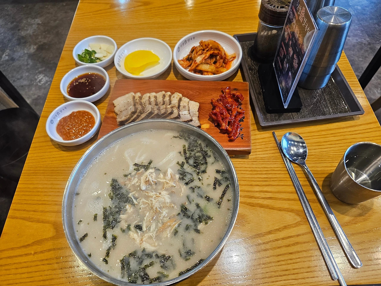 일단 아침밥을 먹으러 갔다. 단백질과 탄수화물 둘 다 든든하게 챙길 생각으로 닭칼국수집에 갔다. 미니보쌈은 맛있었지만 칼국수는 간도 그냥저냥이고 살코기도 너무 적어서 남기지 않을 수 없었다. 점심으로 먹을 왕만두를 포장해서 가게를 나왔다.