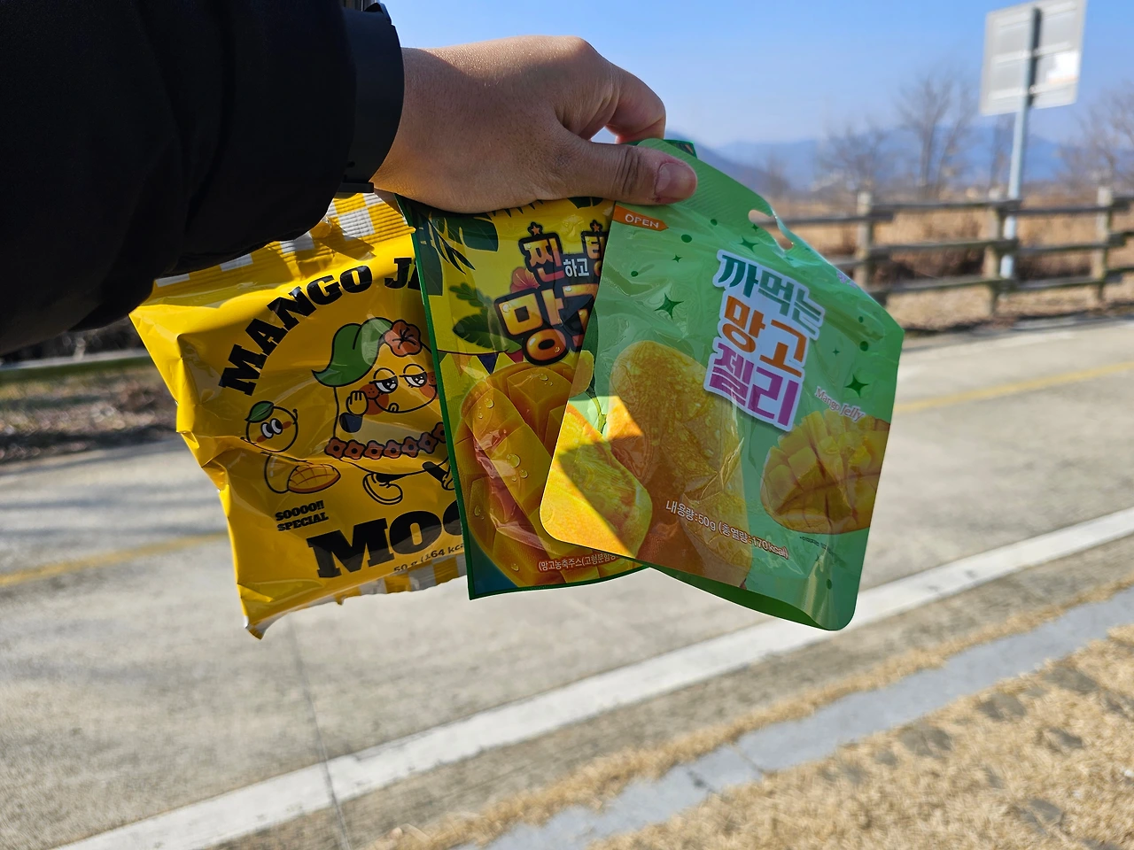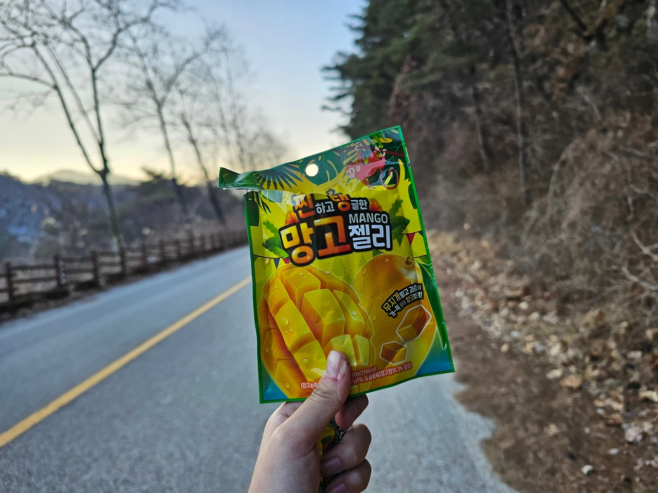 엄마가 걷는 동안 밥이라도 사 먹으라고 편의점 기프티콘을 보내줘서 망고 젤리 3종을 한 번에 구매하는 사치를 부려보았다.