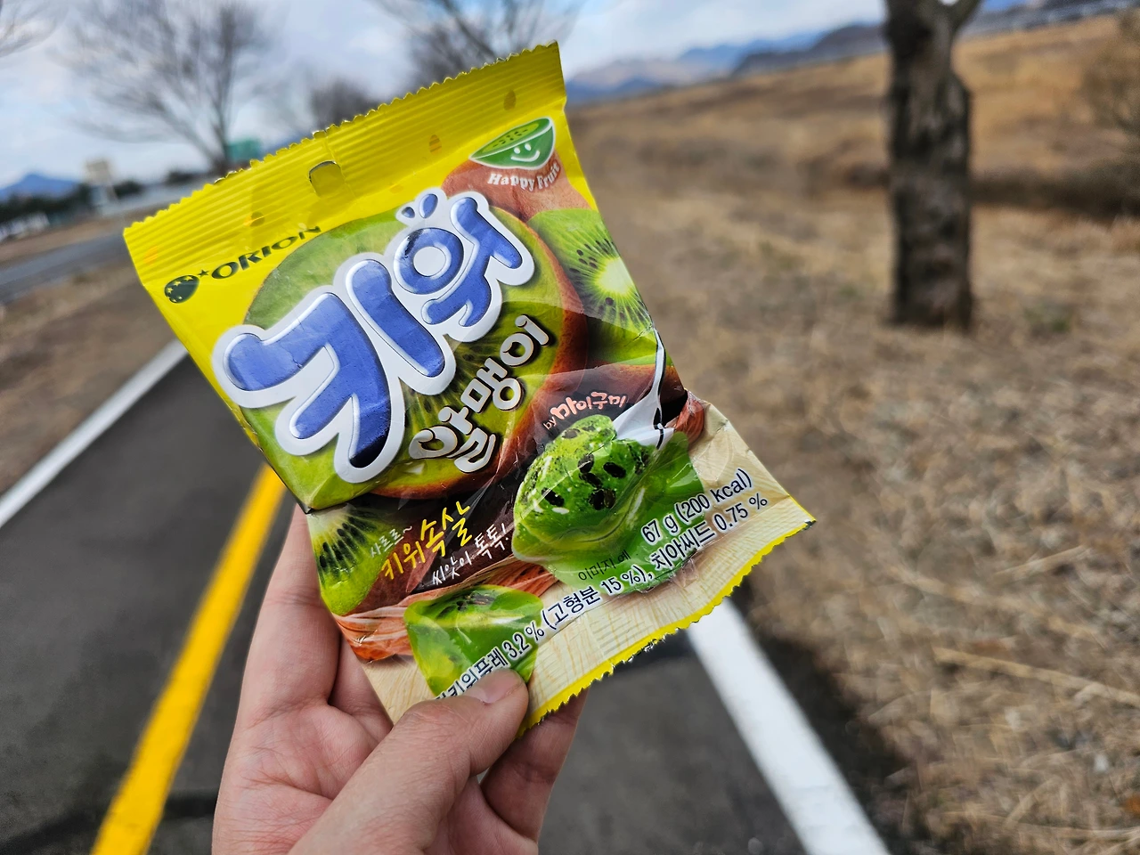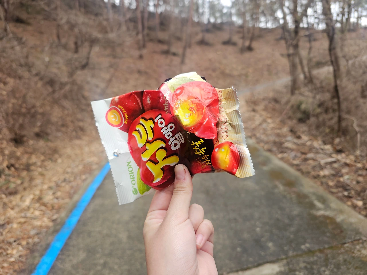 와! 국토종주 최고의 발견. 크고 묵직하고 향긋하고 달다! 옛날에 후르츠 제리 같은 이런 묵직한 식감의 젤리를 나는 참 좋아하는 듯. 국토종주를 끝내고 돌아온 지금까지도 종종 생각나는 맛. 수안보까지 타임어택하며 미친 듯이 걸었던 날 나 스스로를 위한 보상으로 뜯었는데 그 고생을 충분히 치하받은 기분이었다.