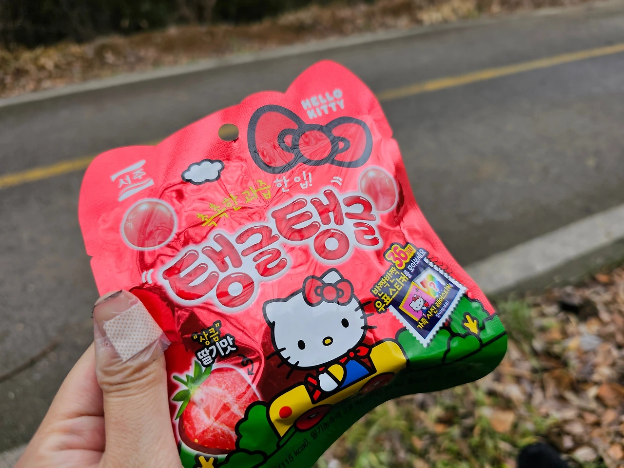 다른 탱글탱글은 2200원인데 딸기맛만 2500원이라 이건 맛없을 수가 없다며 기대 가득 안고 구매. 그런데 양이 너무 심각하게 적었다. 체감상 10알도 못 먹은 것 같은데 벌써 바닥이 보였다. 우표스티커 값이었던 걸까. 식감 자체도 뽀득뽀득한 게 내 취향은 아니었다. 진짜 과즙 느낌으로 쫄깃말랑하게 만들었다면 맛있었을 텐데. 대구 달성군 근방을 걷다가 너무 지쳐서 신발 벗고 쉬면서 먹었다.