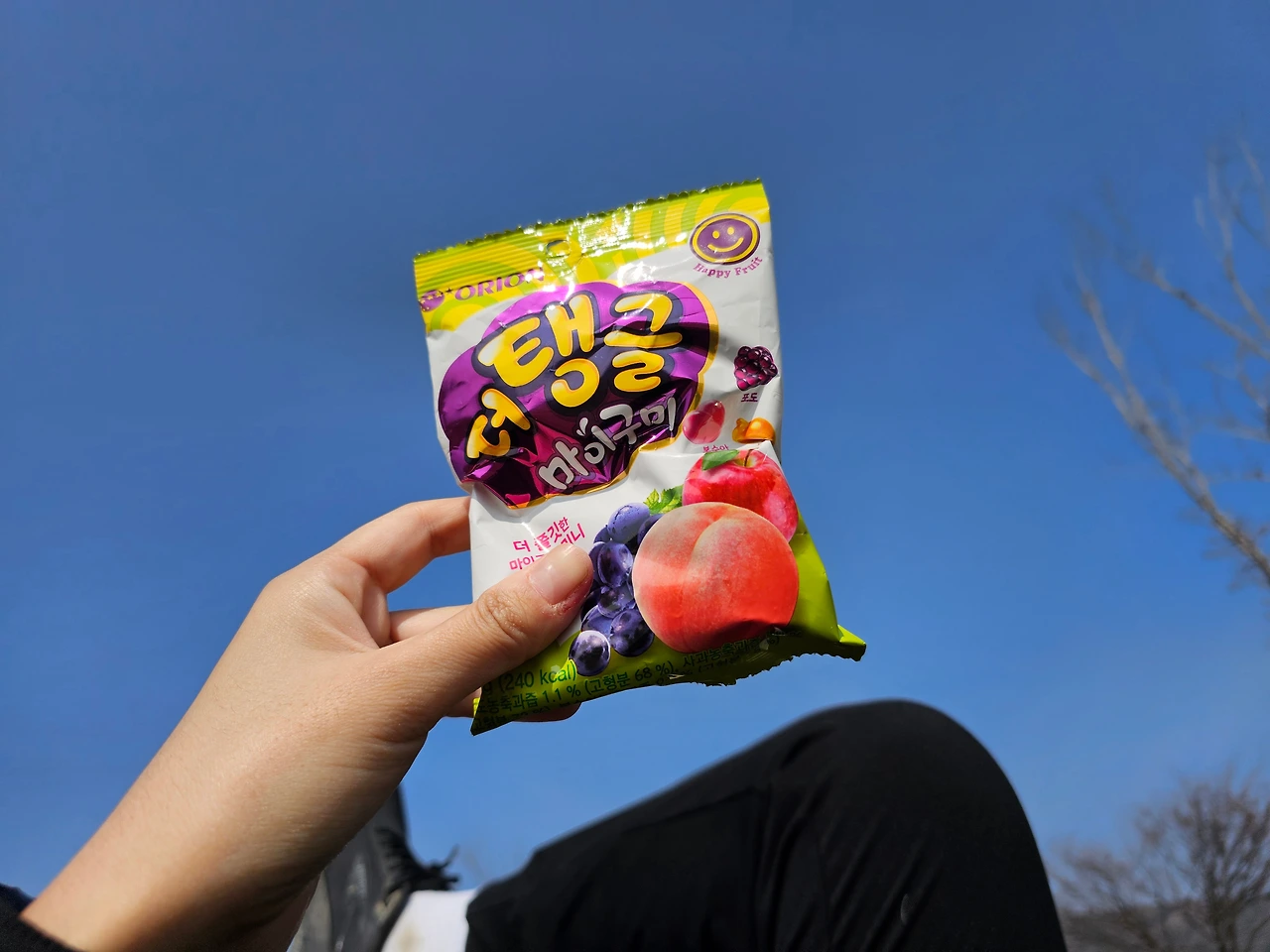 대구 고령군에서 따뜻한 햇살을 받으며 걷는 동안 먹었다. 탱글탱글 시리즈의 뽀득한 식감이 취향이 아님을 깨닫고 이후로는 구매하지 않았다.
