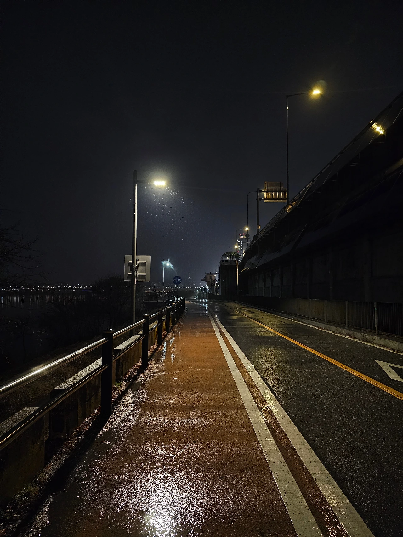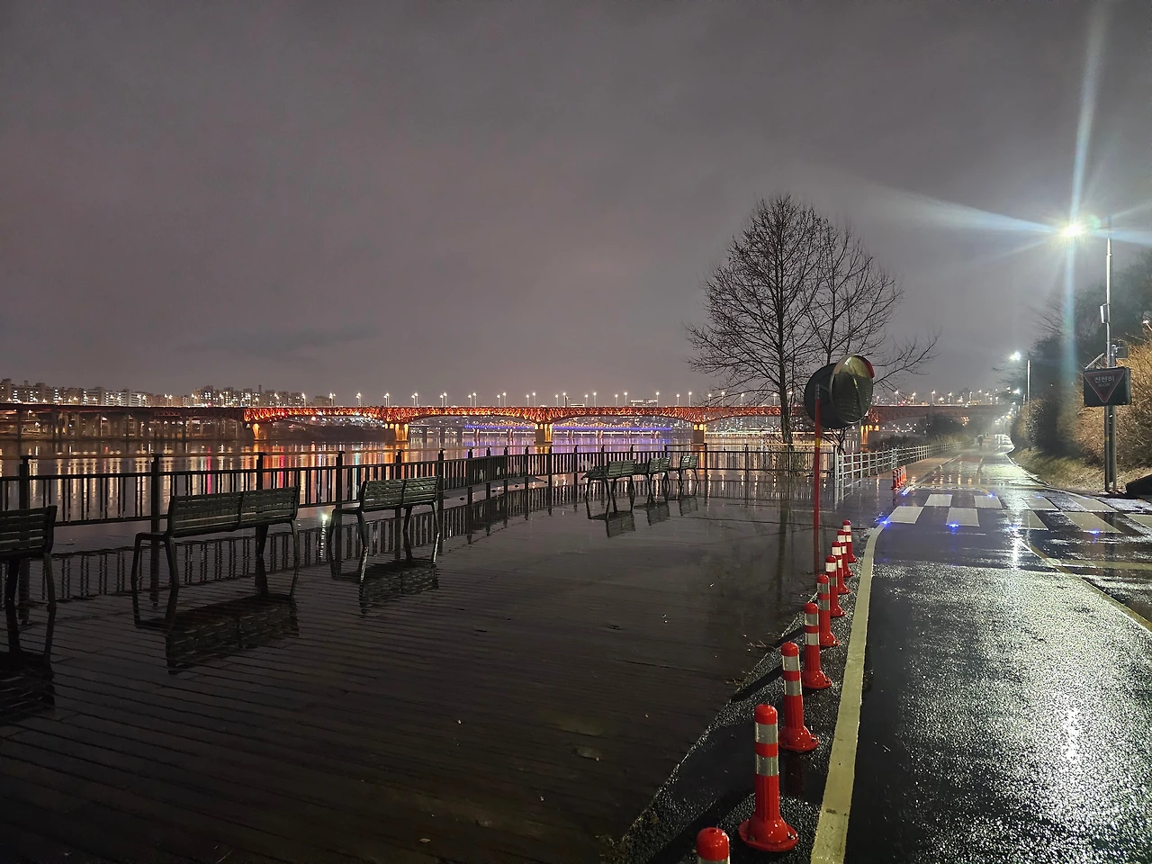 좋아하는 식당과 카페가 잔뜩 있는 압구정을 코앞에 두고 강만 따라 터벅터벅 걸었다. 슬슬 시간이 늦어지고 있어 막차를 잡아탈 수 있는 목적지를 결정해야 했다. 이리저리 시뮬레이션을 돌리다가 결국 한남에서 마무리하자는 결론을 냈다. 집까지 한 번에 가는 광역버스가 있기에 이 근방에서 가장 쉽게 복귀할 수 있는 선택지였기 때문이다. 막차 시간을 고려하면 몇 시간 더 걸을 수 있었지만 비 맞으며 더 걸었다가는 다음날 출근이 너무 괴로울 것 같아 이쯤에서 마무리하기로 했다.