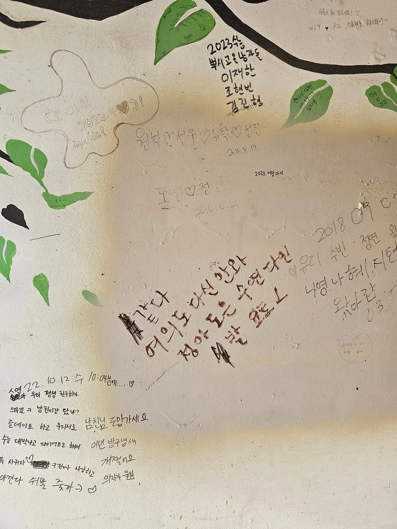 터널을 지나가다가 강력한 에너지가 느껴지는 낙서가 있어서 찍어보았다. 한강에서 요트 타기 내 로망이었는데... 타지 말아야겠네...