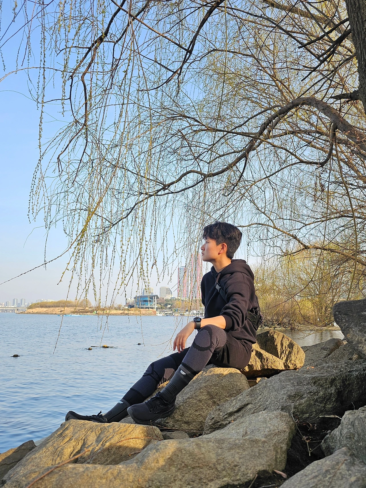 인구밀도가 높아지니 내 사진 건지기가 어렵다. 강가에 후미진 곳이 있길래 내려가보니 풍경이 너무나도 아름다워서 한강 구간 기념사진을 하나 찍었다. 멋지게 나왔지만 찍는 동안은 뾰족한 바위 위에서 균형 잡느라고 엉덩이에 온 정신을 집중해야 했음.