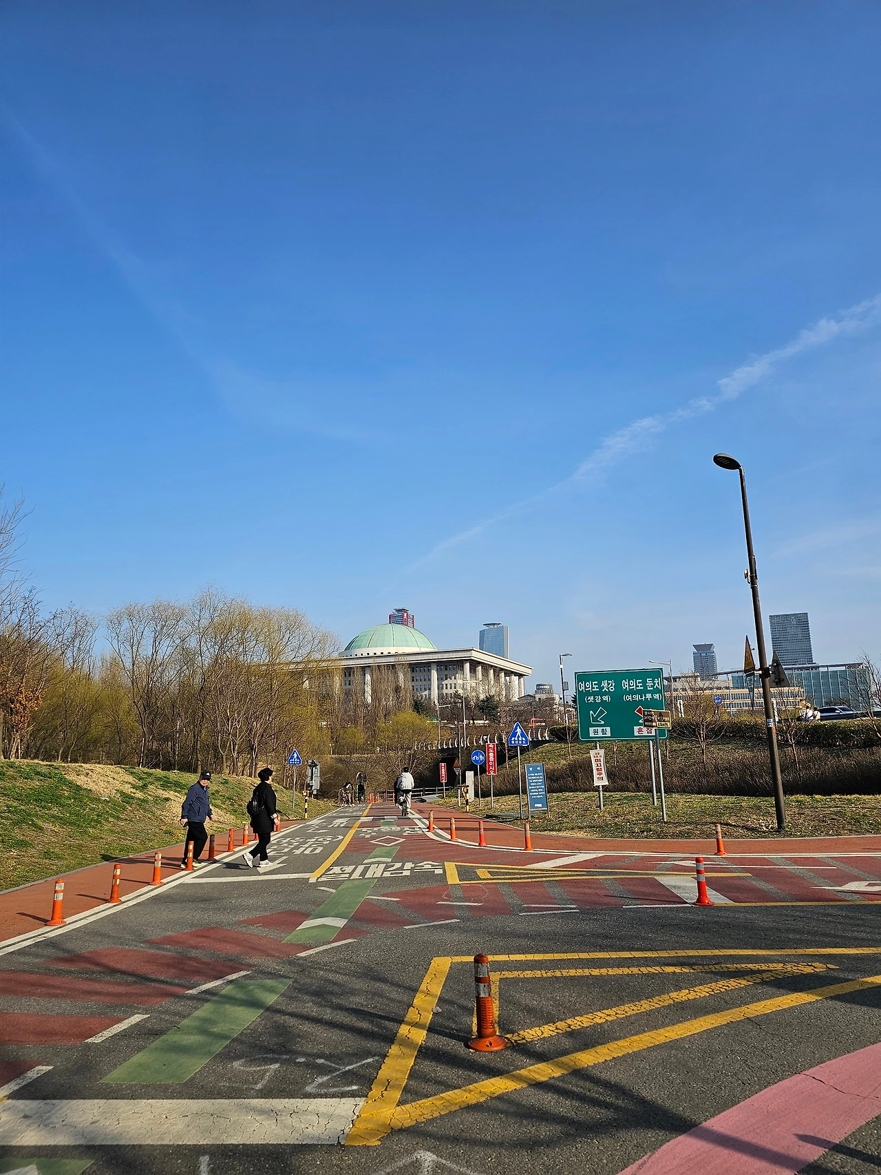 여의도 인증도 완료! 날이 좋아서인지 자전거 타는 사람들이 엄청나게 많이 지나갔다. 2월이었다면 사람이 이렇게까지 많지는 않았을 것 같은데. 그간 고독한 종주를 했던 것도 어쩌면 겨울이어서 가능했던 게 아닐까 하는 생각이 들었다.