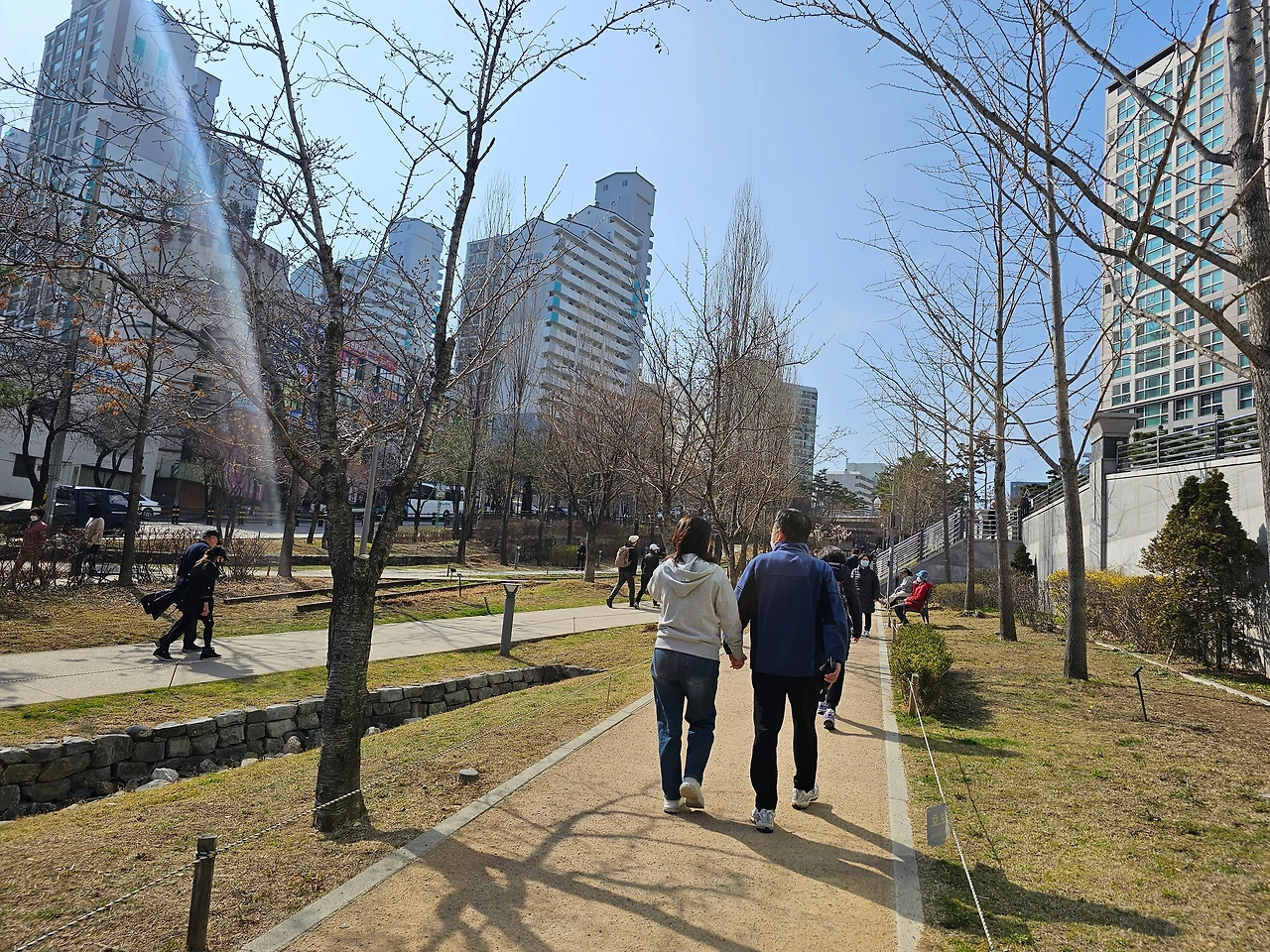 날이 많이 따뜻해졌다. 나름 얇게 입었다고 생각했는데도 더웠다. 그나마 바람이 잘 불어주어서 걸을만했다. 한강 근처 공원에 진입하니 유모차 탄 아기부터 운동기구를 백분 활용하고 있는 노인까지 다양한 연령대의 사람들이 스쳐 지나간다. 양평 진입 후 시내에 가까워질수록 청년과 학생들이 많이 보여서 새삼 신기했던 기억이 난다.