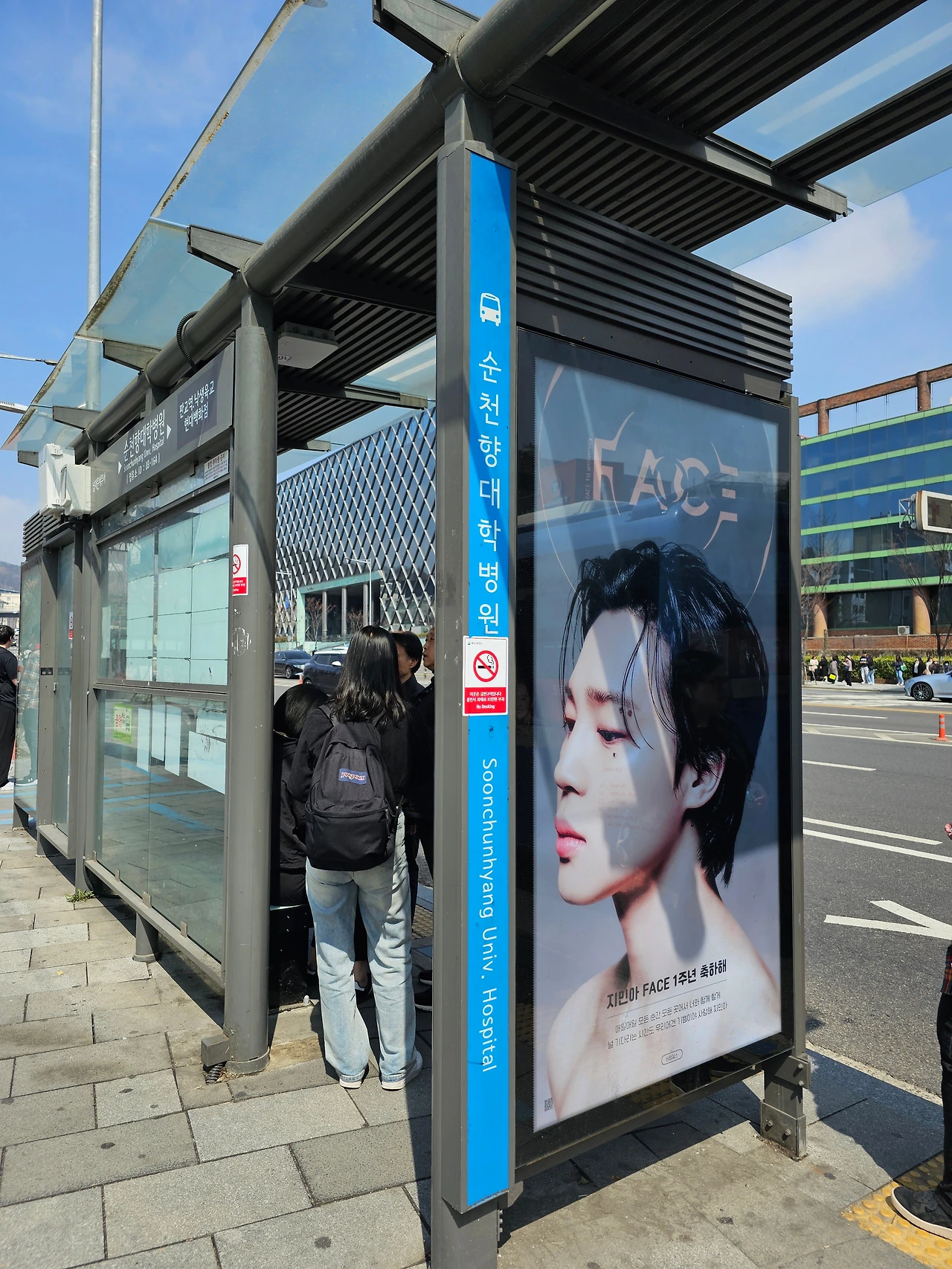 2월 종주를 마칠 때는 이곳 정류장에 BTS 슈가 사진이 걸려있었는데, 종주를 재개하러 오니 BTS 지민 사진이 걸려 있다. BTS 팬들이 좋아하는 정류장인가.