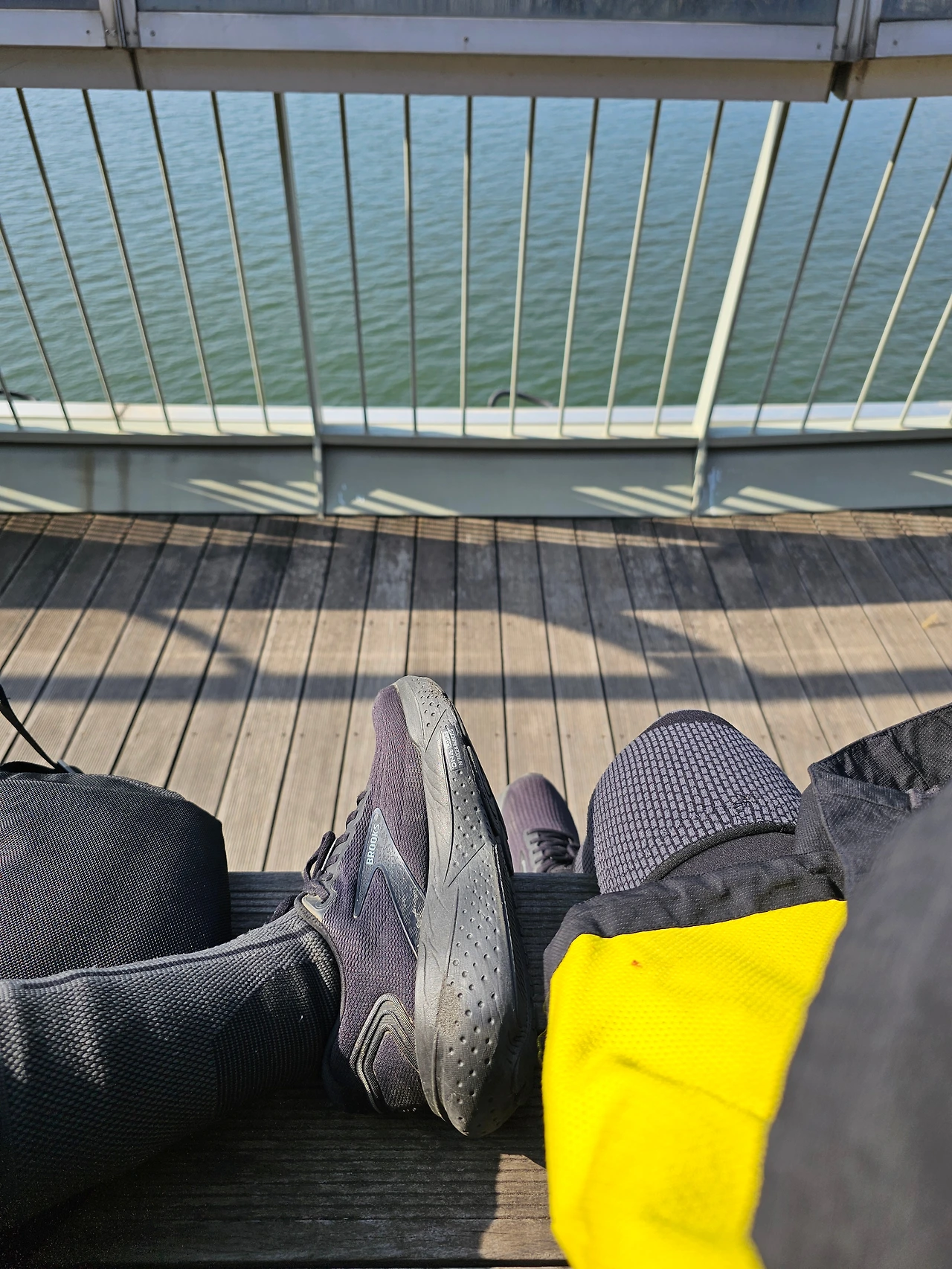 그리고 3월. 국토종주길을 마저 걷기 위해 길을 나섰다. 18일간 매일같이 걷고 마지막 날에 몸살 나고 스페인 출장 가서 하루종일 서서 일하기까지, 체력이 동나서 회복하는 데 한참 걸렸다. 컨디션이 좀 올라온다 싶어서 바로 길을 나섰다. 조거팬츠를 집어 들었다가 그래도 종주를 함께했던 동료인데 두고 갈 수 없지, 하는 생각이 들어서 내려놓고 종주할 때 입었던 바지에 다리를 꿰어 넣었다.
