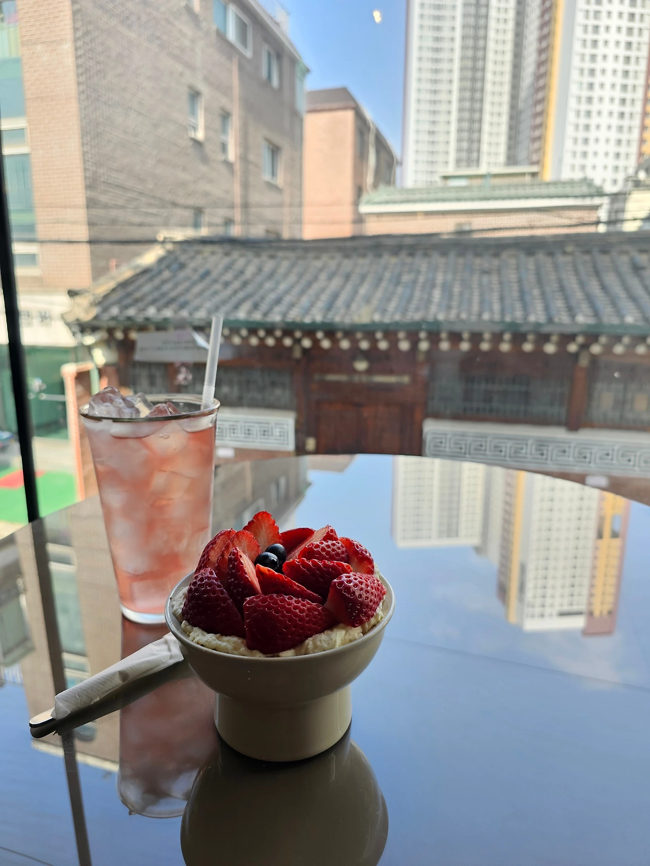 예전부터 너무나도 가보고 싶었지만 기회가 없었던 카페가 근처에 있어서 지나치지 못하고 들렀다. 대구에서는 가고 싶었던 카페가 10km 떨어져 있어서 미련 없이 포기했는데, 서울은 역시나 밀도 높은 도시다. 이때까지 휴식이란 허허벌판 한가운데 먼지 쌓인 정자에서 취하는 것이었는데... 국토종주 하면서 핫플 카페에서 쉬는 날도 다 오는구만. 너도나도 최선을 다해 차려입고 오는 힙한 카페에서 츄리닝에 바람막이를 입고 혼자서 디저트를 조졌다. 마침 또 창가자리에 앉혀주셔서 멋진 뷰를 즐기며 행복한 시간을 보냈다.