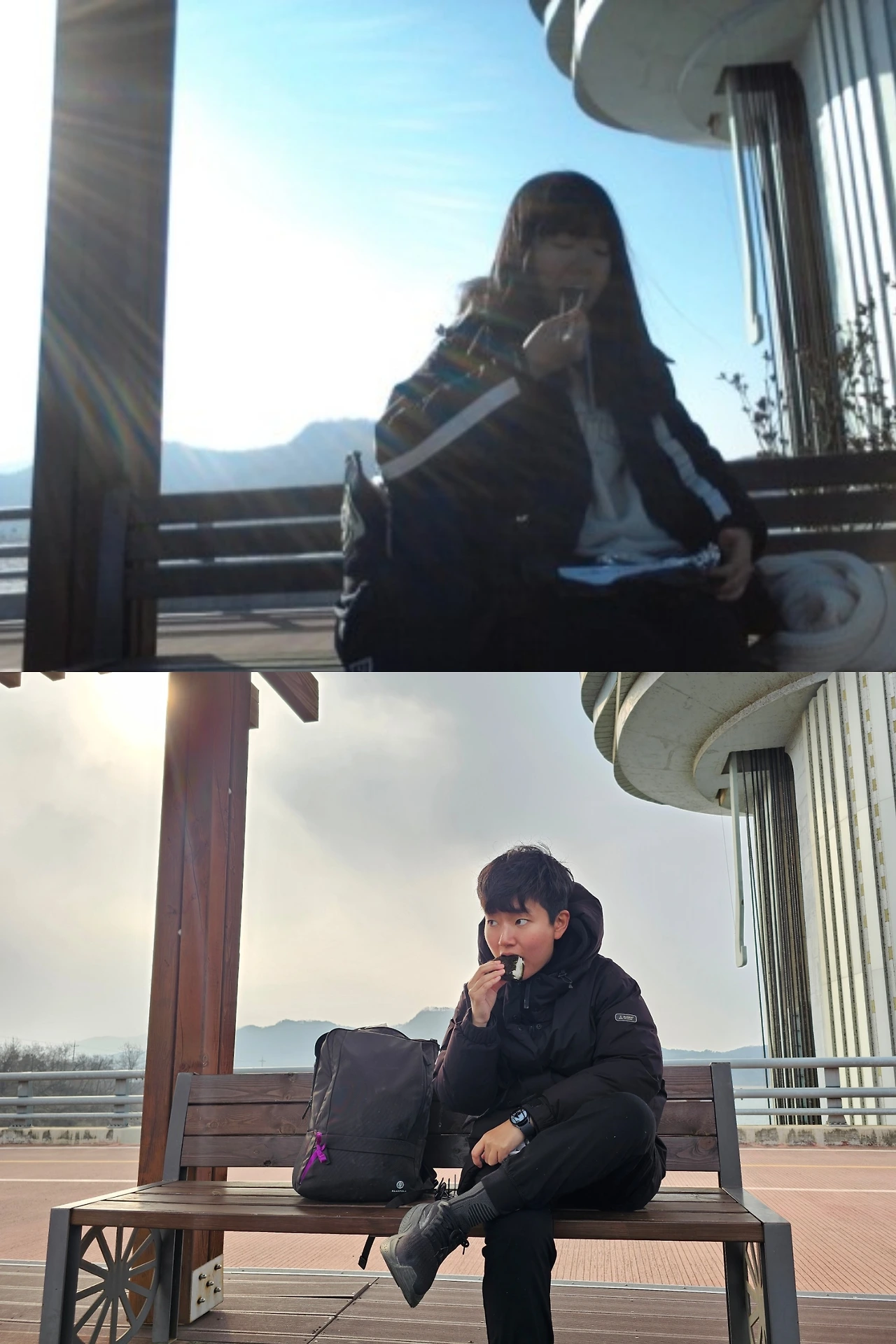 카메라의 발전은 말할 것도 없다. 강산은 그대로이고 그걸 찍은 핸드폰 기종만 달라졌을 뿐인데 이렇게 큰 차이가 있을 줄이야. 화질뿐 아니라 편리성도 개선되었다. 카메라 세팅해서 타이머 맞춘 다음 셔터 누르고 와다다 뛰어가서 포즈 잡고 확인하고 다시 찍고, 무한 반복하던 예전 종주와는 달리 이번에는 스마트워치의 리모트 카메라 기능을 이용해서 실시간으로 구도와 포즈를 확인하며 사진을 찍었다. 시간과 에너지는 단축되었는데 퀄리티는 어마어마하게 상승하는 놀라운 현상. 요즘은 핸드폰 기본 갤러리 어플로 각도조정, 크롭, 영상편집 등의 보정도 가능해서 간중간 정리도 가능했다.