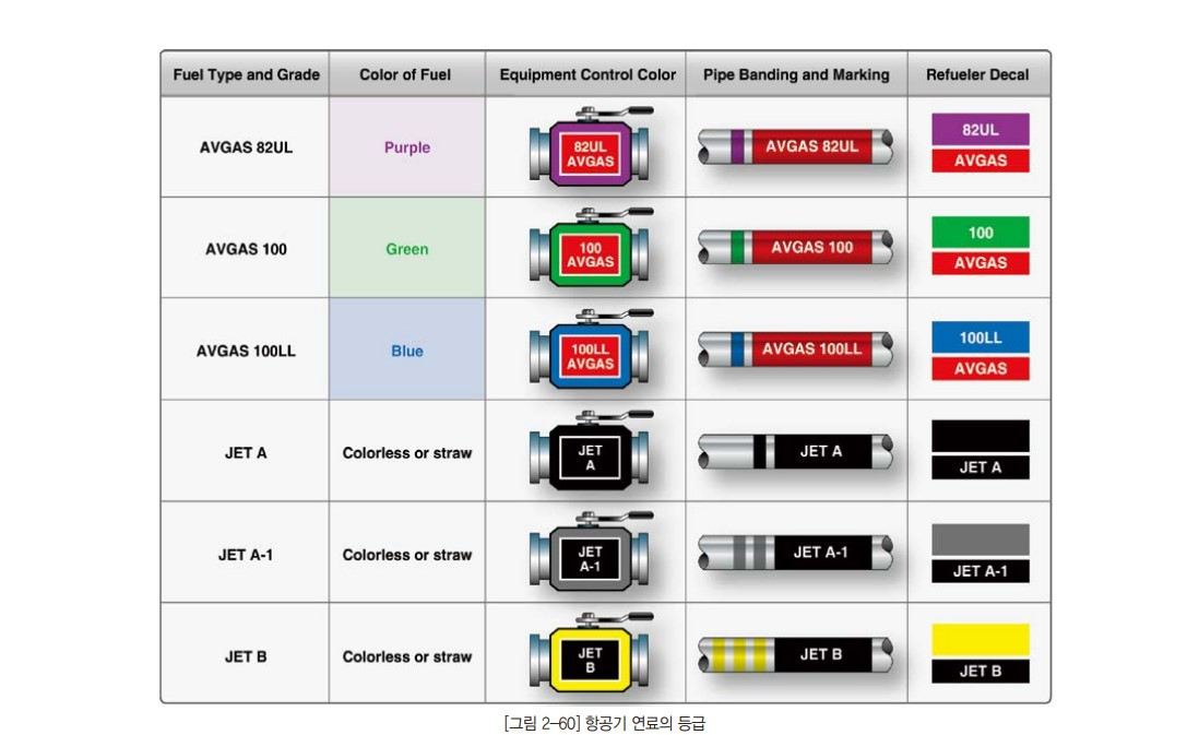 AVGAS와 민간제트기, 군용제트기에 사용되는 연료에 차이는 발화점 차이, Anti-knocking이라는 이상 점화현상을 억제해 주는 첨가제의 양, 산화방지제, 부식방지제, 빙결방지제 등이 얼마나 첨가되어 있는지가 다릅니다.