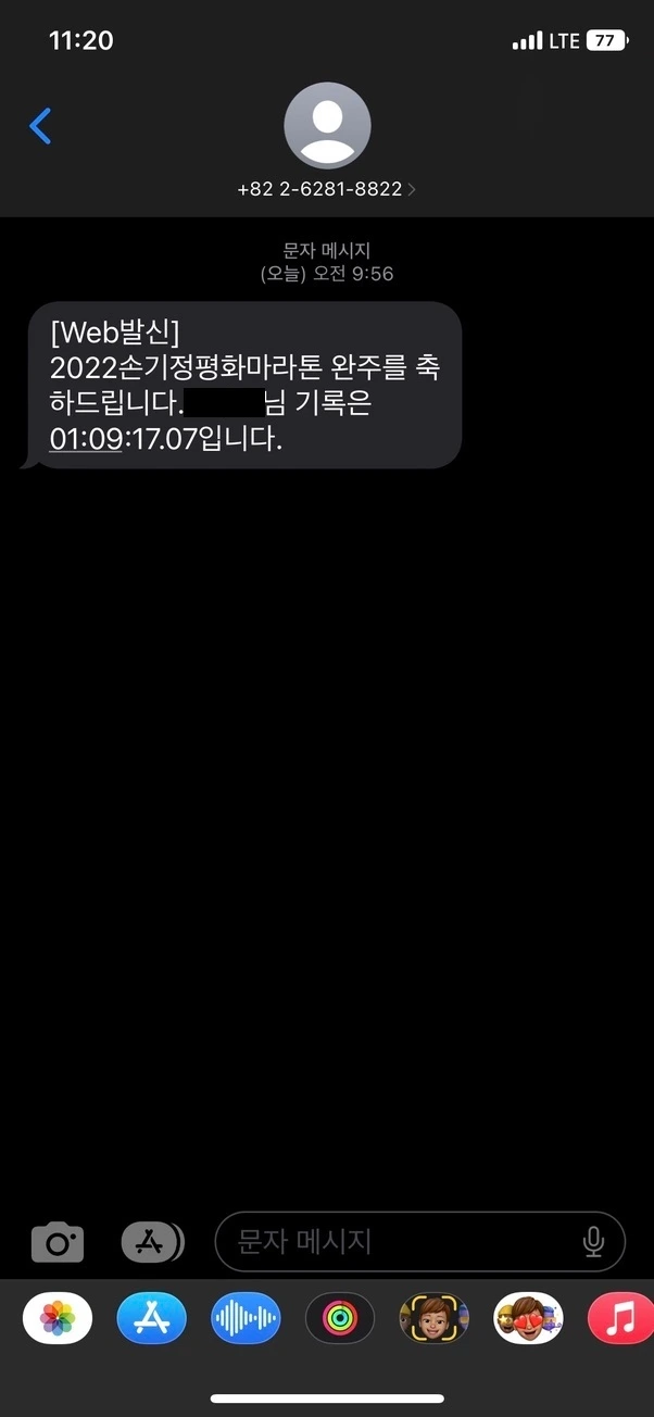 그렇게 앉아서 숨을 고르는 동안 완주 기록을 알리는 문자가 도착했다.
