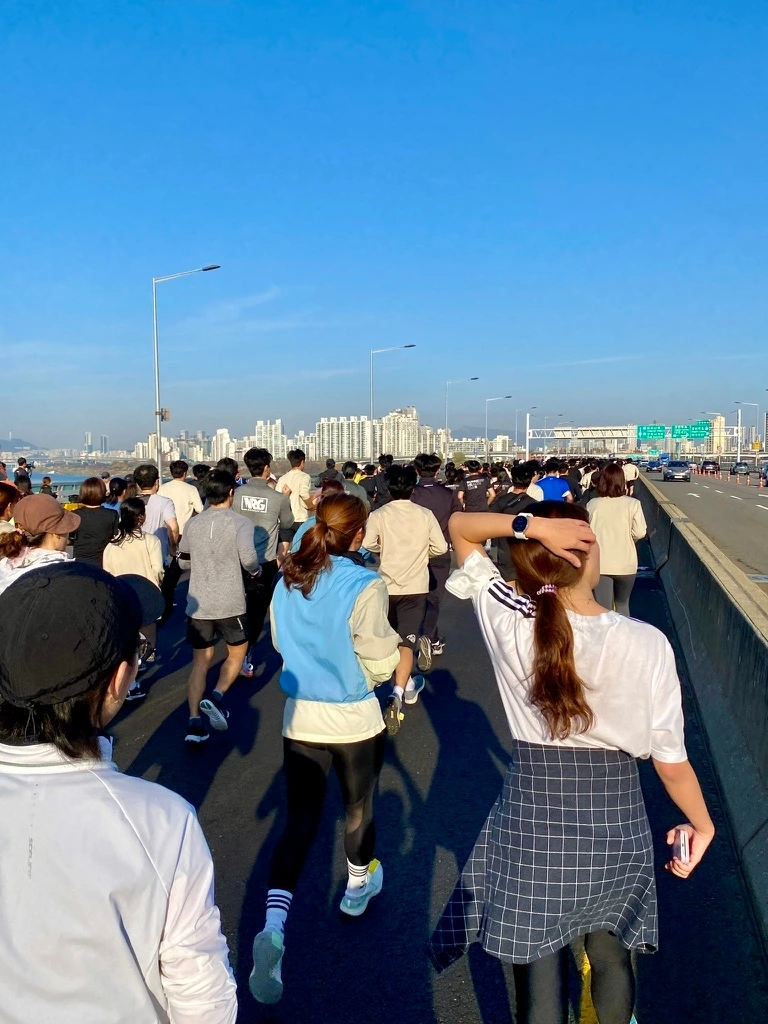 처음에는 모두들 천천히 제자리 뛰기를 하듯 조금씩 앞으로 나아가다가, 경기장 밖을 나가는 순간부터 엄청난 사람들이 내 옆을 빠르게 지나간다. 그것도 엄청난 스피드로 쌩쌩.