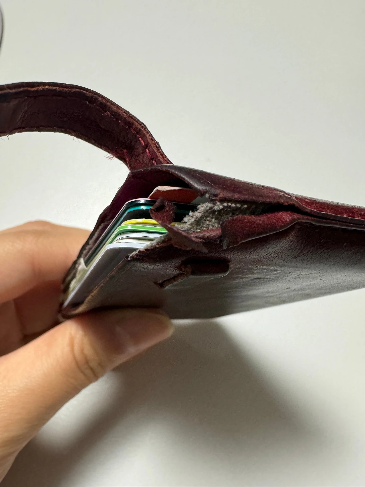 그런데 이상하게 거의 매일 들고 다니면서도 12년 동안 단 한 번도 잃어버리지 않은 물건이 있다. 바로 나의 버건디색 카드지갑. 심지어 비싼 지갑도 아니다. 교보문고 핫트랙스에서 지나가는 길에 우연히 버건디 컬러에 끌려 매대 앞에 멈춰 섰고 가볍게 만져본 가죽의 촉감이 마음에 들어 저렴한 가격에 구매했던 아이다.