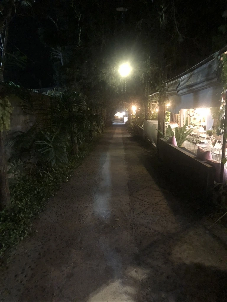 그러던 중 우연히 좁지만 깔끔해보이는 골목을 하나 발견했는데, 입구에 '00방갈로, xx방갈로' 같은 팻말이 엄청 많아 마지막 기대를 안고 골목으로 들어갔다. 방금까지 큰길에 있었다는 게 믿겨지지 않을만큼 아늑했다. 구멍가게 하나, 빨래방 하나, 오토바이 대여소 하나를 지나가니 여러 숙소들이 보였는데, 왠지 기운이 좋았다. 골목 내 몇 군데를 돌아본 끝에, 실내가 매우 깨끗하고 정갈한 숙소 한 곳을 발견했다. 가격도 꽤 합리적이었고, 아침밥도 나온다고 한다.