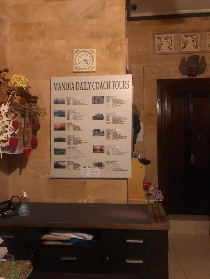 발리 공항에서 우붓까지 가는 길은 매우 한산했고, 그래서인지 예상시간보다 30분 빠른 2시 반에 숙소 앞에 도착했다. 숙소는 에어비앤비에서 소개한 것처럼 번화가에 위치하긴 했지만, 입구는 차가 들어가기는 어려운 좁은 골목 안쪽에 위치해 걸어 들어가야만 했다. 결국 큰 도로에서 짐을 내려 드라이버는 보내고 나 혼자 짐을 끌고 숙소로 들어갔다.