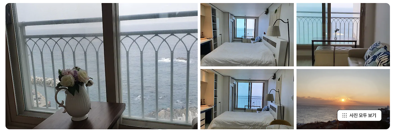 강릉/주문진/속초/부산 지역은 크게 상관없었다. 에어비앤비, 인스타그램, 구글, 한달살기 앱 등 몇 날 며칠 이 잡듯 뒤졌고, 각 지역마다 매력적인 숙소를 여럿 찾았는데, 그중에서도 찐 바다뷰를 발견했다!