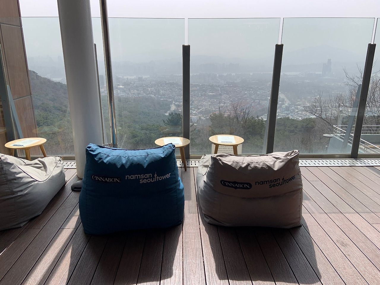 남산타워에서 조금 쉬었다 가기로 하여 H는 라떼를 저는 아이스아메리카노를 주문하였습니다. 이곳엔 남산의 전경을 바라보며 차를 마실 수 있도록 편안한 좌석이 마련되어 있습니다. 여기서 차를 마시면 비 오는 날이나 눈 내리는 날, 초록이 우거진 여름이나 연두잎 싹트는 봄에도 풍경이 천의 얼굴로 마음을 보듬어 줄 것 같습니다.