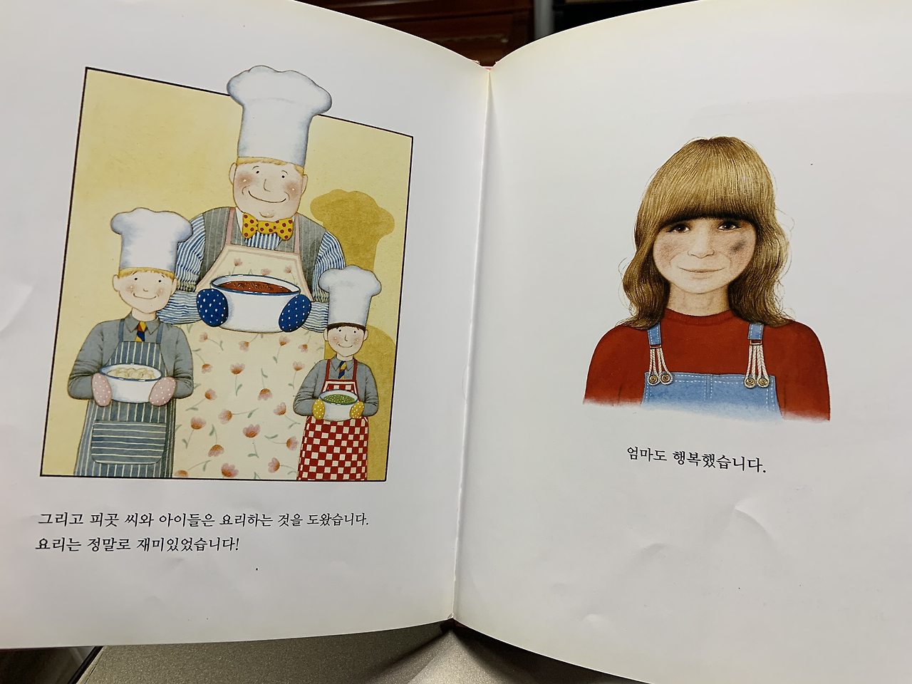 그림책 후반부로 갈수로 가족들은 가사노동을 분담한다.