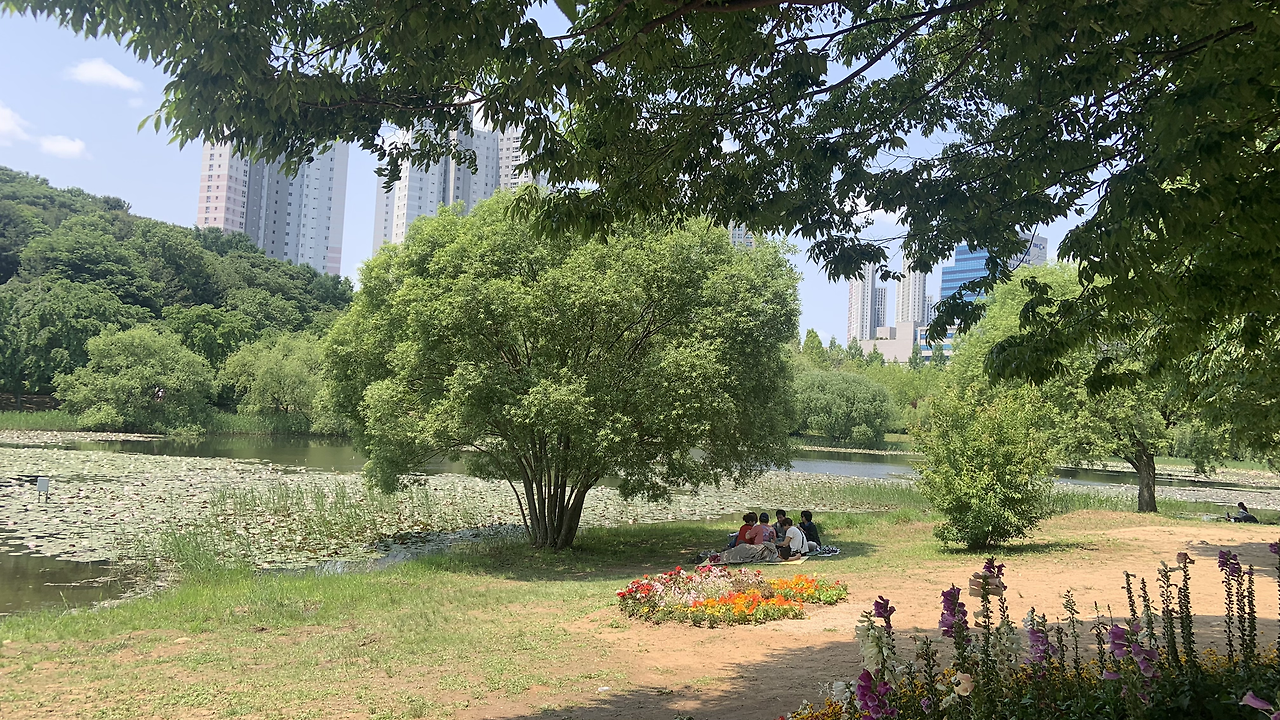 5월 4일인데도 날씨가 제법 덥다. 우리가 날마다 걷던 길에 다양한 꽃들이 새로이 심겨 있었고 호수에서는 수련이 하얗게 피어나기 시작한다. 꽃 전시장소 전체에 구성된 꽃들은 우리 토종꽃보다는 세계 여러 나라의 화려하고 다채로운 꽃들이 전시되어 있다.