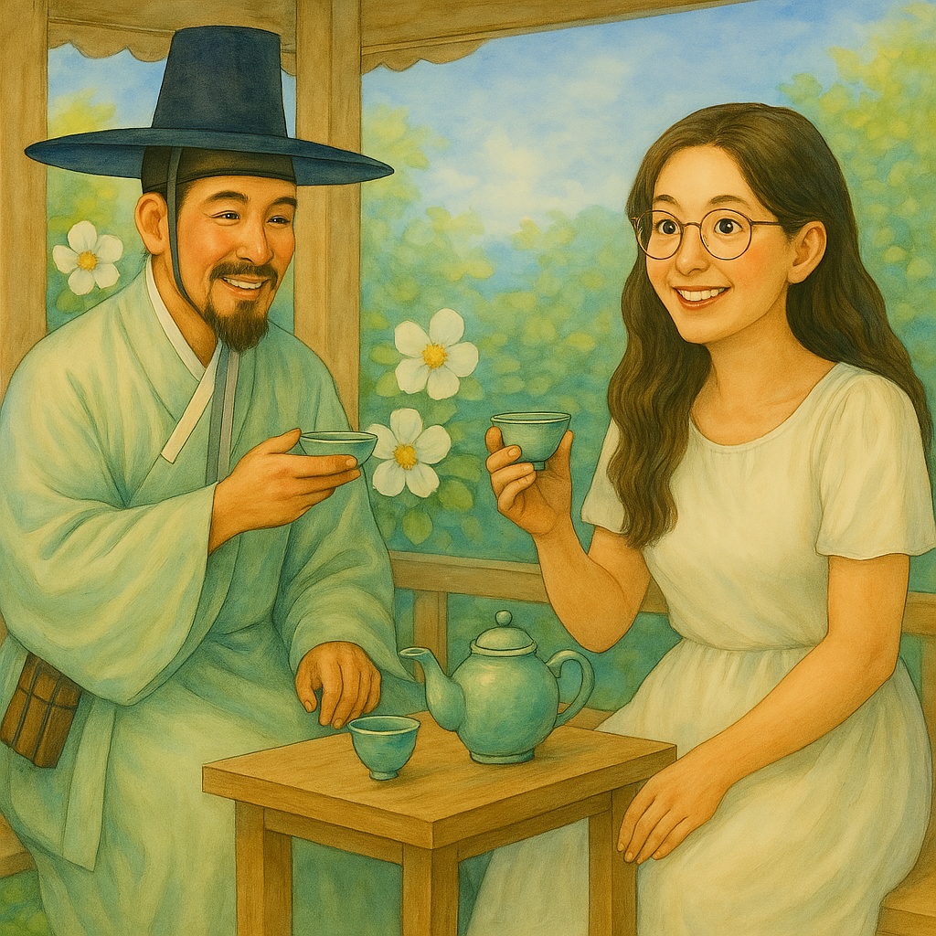 김시습과 찔레꽃차를 마시는 모습_이미지Copilot+남효정