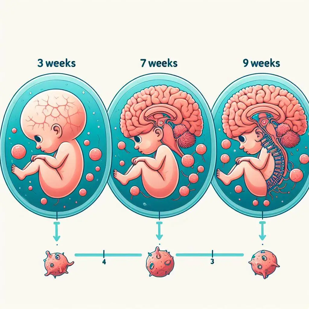 여기 사랑하는 남자와 여자가 있습니다. 그들이 신체적으로 결합하고 그 과정에서 남자의 정자와 여자의 난자가 만나 세포가 수정됩니다. 그다음 세포분열이 일어나는데 약 3주 후에 내배엽, 외배엽, 중배엽으로 발달합니다. 3주가 된 태아의 뇌는 관(tube) 모양으로 아주 단순한 구조를 가지고 있어요. 임신 후 6주가 되면 이때부터 보다 분명한 하부 구조로 분화되어 발달하게 되고 마침내 7개 주요 부분으로 나뉘어 발달하게 됩니다.