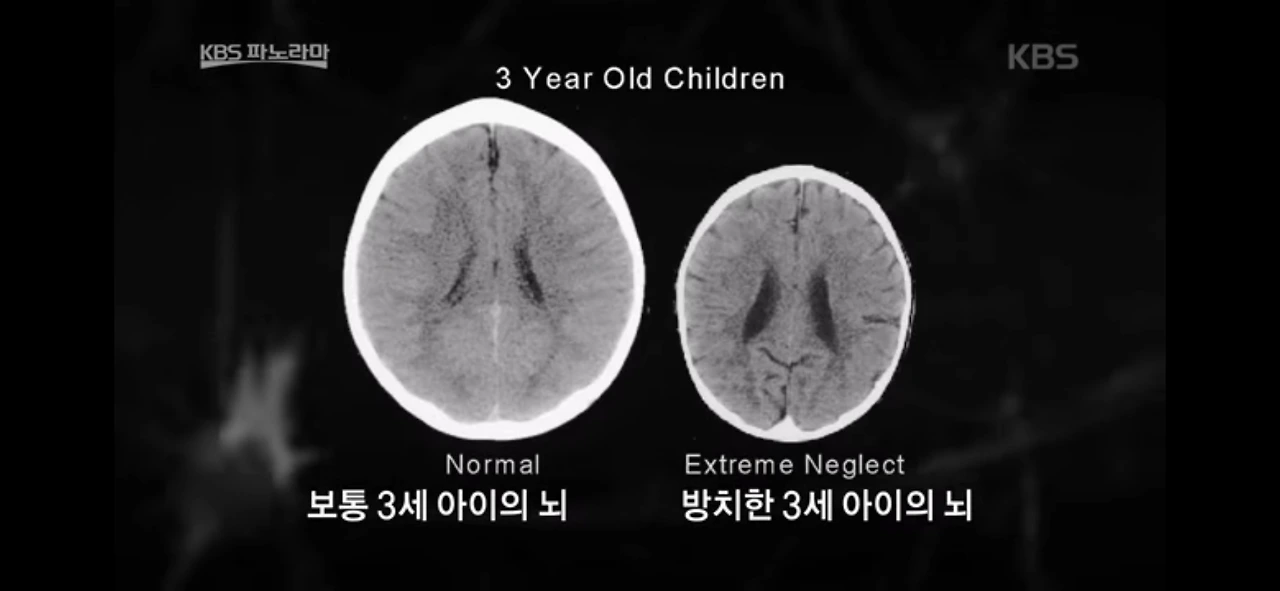 초기 유년기에 안정적인 정서를 경험한 아이는 신경 연결의 발달이 잘 이루어지지만, 그렇지 않고 불안함을 경험한 아이는 신경 연결의 발달이 미비합니다. 좋은 예로 일반적이 가정에서 따뜻한 사랑과 관심을 가진 유아와 극도로 방치된 유아의 뇌사진을 비교해 보면 뇌의 크기와 시냅스의 연결 정도가 확연히 차이가 확인 수 있습니다. 안정된 애착과 자연 속에서 놀이하도록 지원하는 것은 영유아의 스트레스를 낮춰 행복하고 잘 메우는 아이로 자라나게 한다는 것을 꼭 기억하시기 바랍니다. 이 부분은 이전의 애착 관련 내용에서 다루었던 내용입니다.