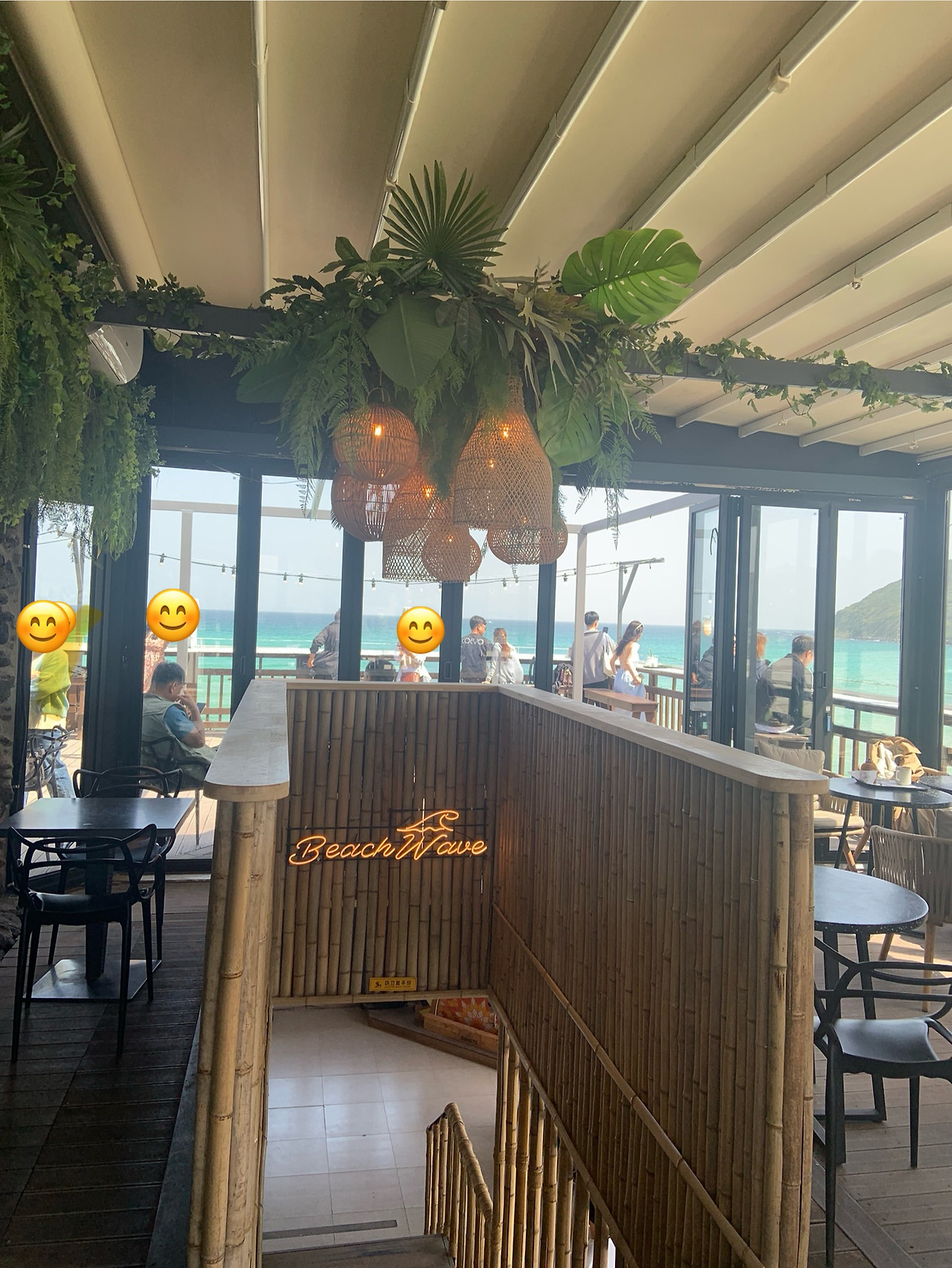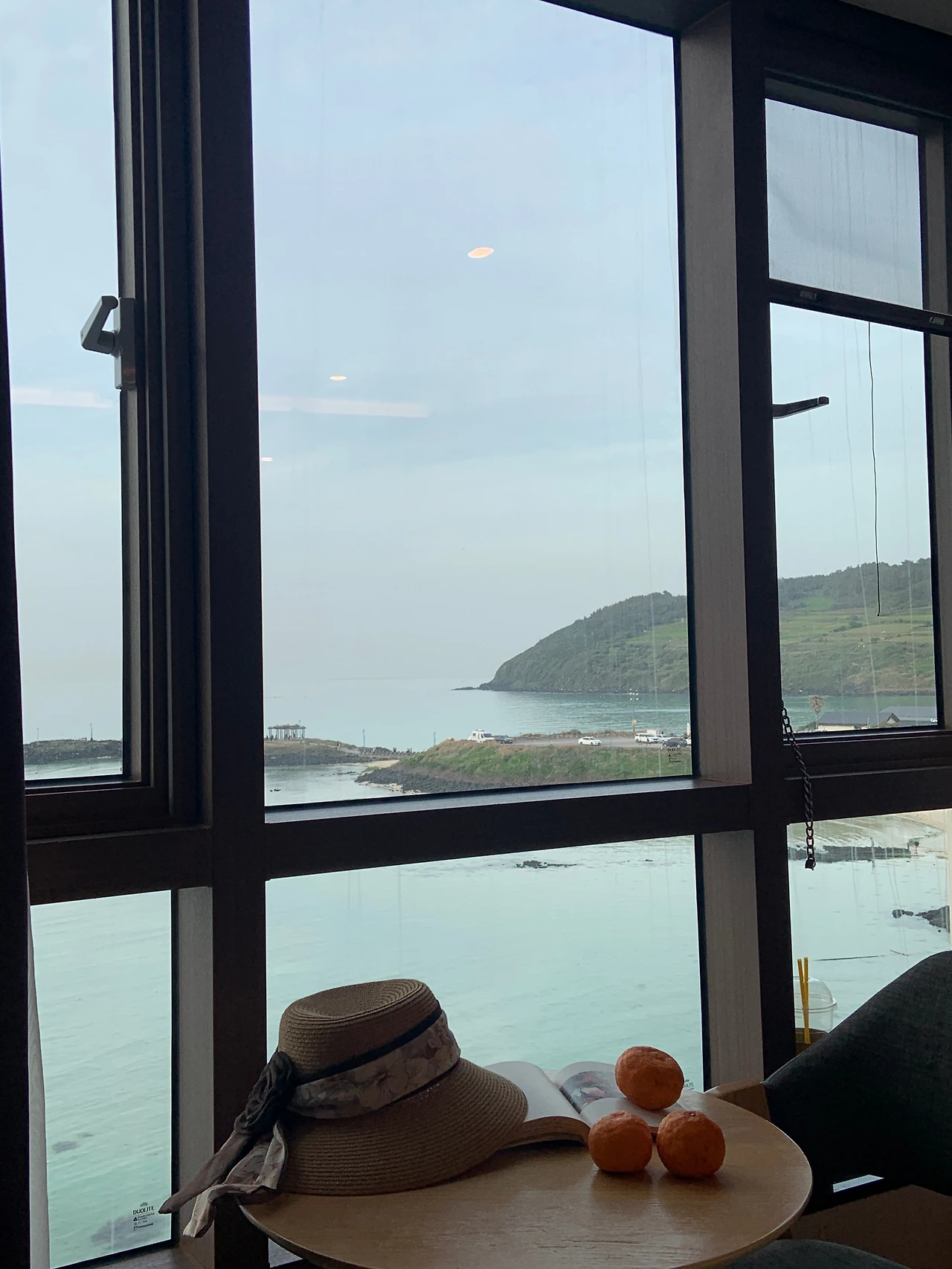 “저기 예쁜 카페가 있어. 우리 한 번 들어가 볼래? 바다가 한눈에 다 담기겠어. “