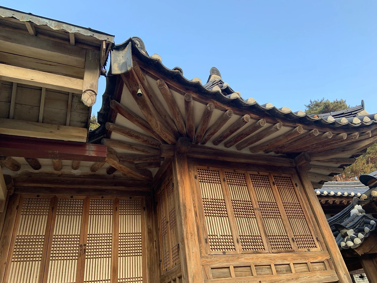 오죽헌에서 동쪽으로 1.5km 떨어진 곳에 위치한 강릉 선교장은 고택의 예스러운 분위기를 물씬 풍기며 고즈넉하게 오후의 햇살 속에 그렇게 있었습니다. 잔뜩 긴장된 체 웅크리고 있던 마음의 실타래가 사르르 풀리는 듯합니다. 저는 하늘을 배경으로 유연한 곡선을 그리는 기와지붕을 참 좋아합니다. 창호지를 발라 정갈하게 유지되고 있는 여닫이 문 위로 비치는 야리야리한 겨울 빛도 좋아하고요.