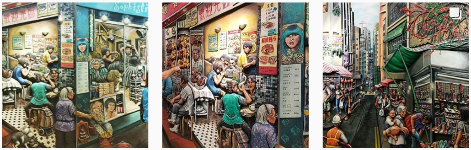 바로 홍콩의 일상을 그려 넣은 것들이 그 특징입니다.
