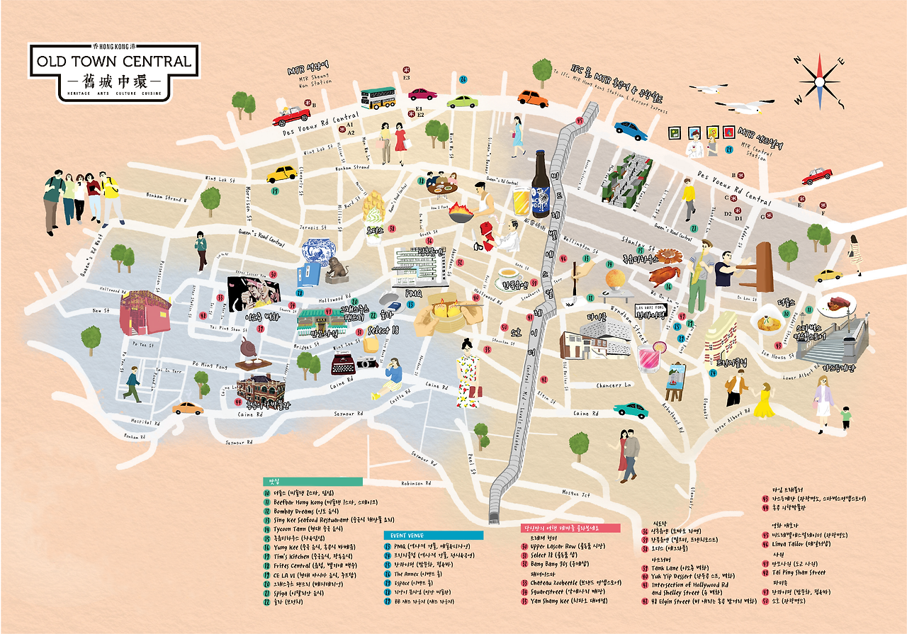 홍콩관광청 산하 기관인 MEHK에서 제작한 새로운 올드타운 센트럴 MICE 가이드북에 포함된 지도를 좀 더 한국인 눈에 보기 쉽게 만든 지도입니다.