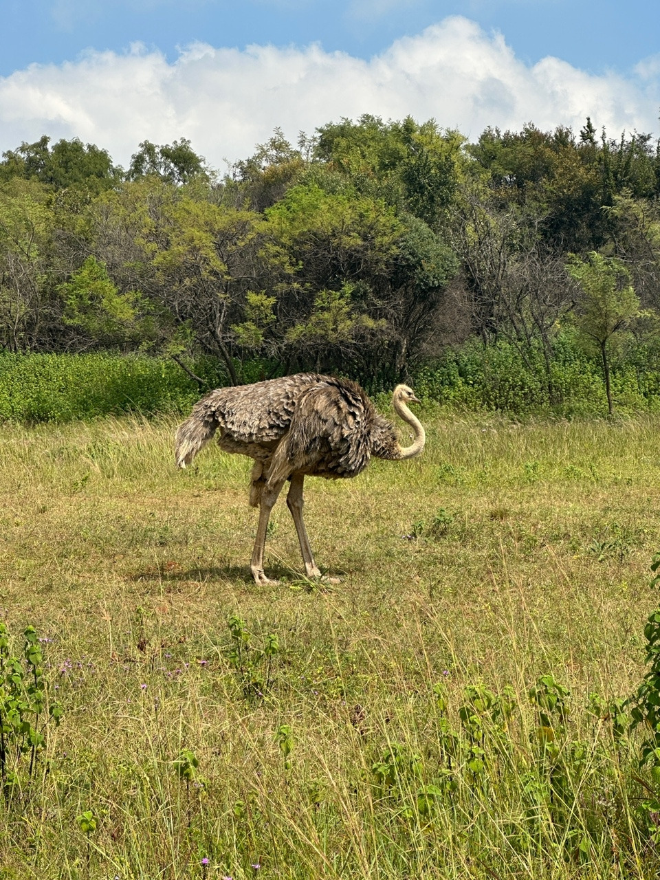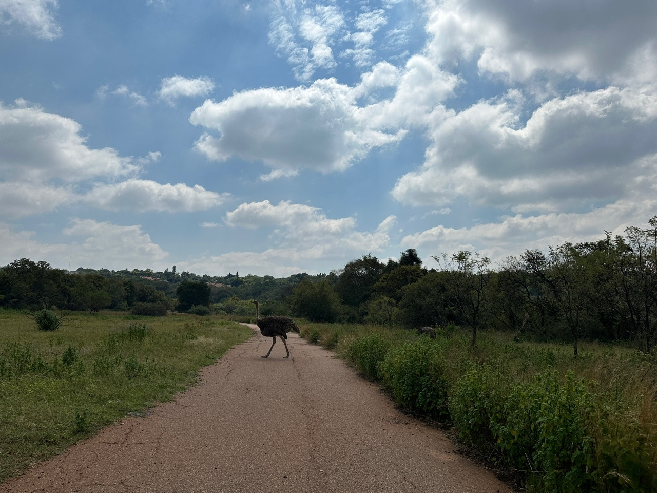 약 한 시간 넘는 시간 동안 8000걸음을 걷고 멋진 피날레를 장식할 수 있도록 도와준 타조 덕에 멋진 샷 하나 건졌다. 파란 하늘에 손 뻗으면 닿을 듯 한 둥둥 구름, 푸른 산과 나무 아래 길게 뻗은 황톳길, 그리고 그 길을 가로지르는 우아한 타조의 자태로 글을 마무리한다.