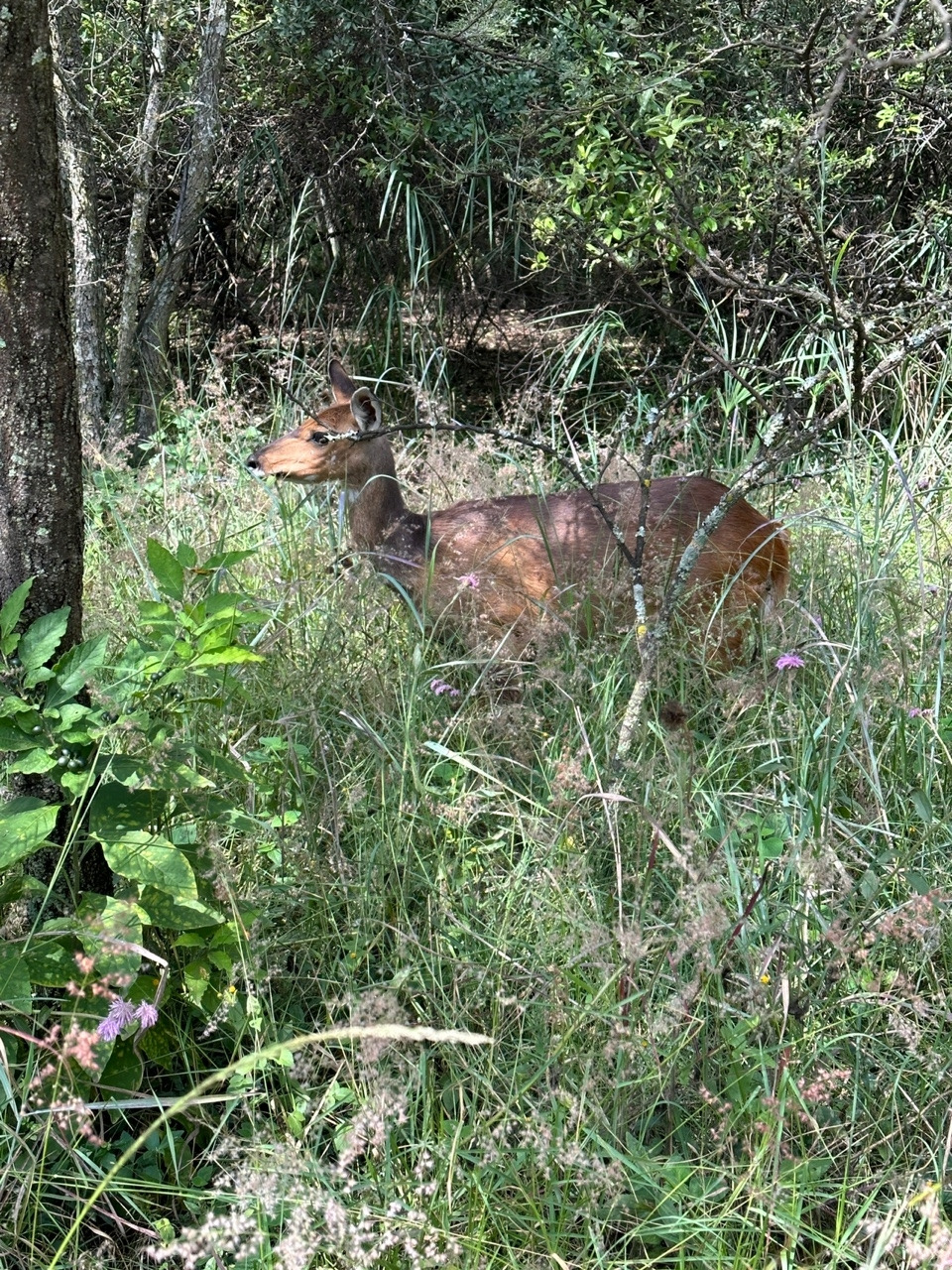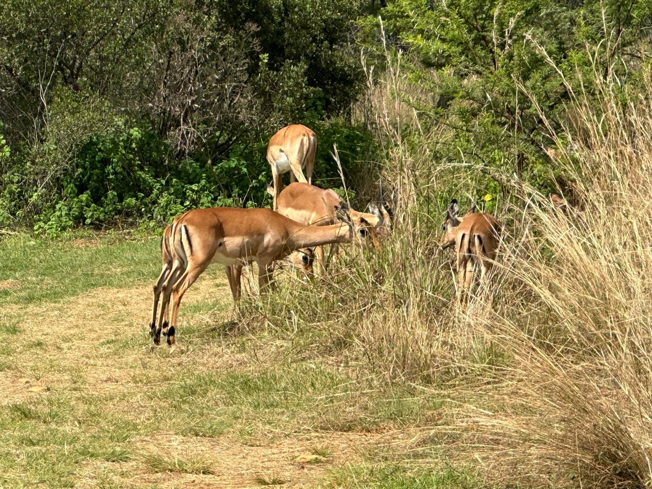 아이랑 이야기를 하며 땅만 보고 가다가 바스락 소리에 놀라서 흠칫 쳐다보니 암스프링벅스가 풀을 뜯고 있었다. 곱기도 하지, 사진을 찍으려고 하니 요엘이가 손가락을 입에 가져다 대며 조용히 하라고 신호를 준다.