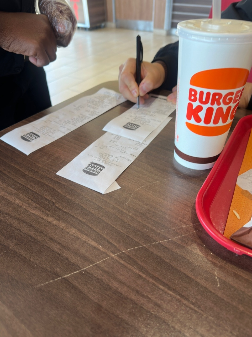 영수증을 보니, 주문 자체가 잘 못 들어갔다. 두 개다 meal(세트메뉴)로 계산이 됐다. 그럼, 음료를 한 잔 더 줬어야지! 그런 상황에서 얼씨구나 덥석 그냥 먹으면 안 된다. 잘 따져봐야 한다. 매니저가 나온다. 쟁반을 들고 와서 물어본다.