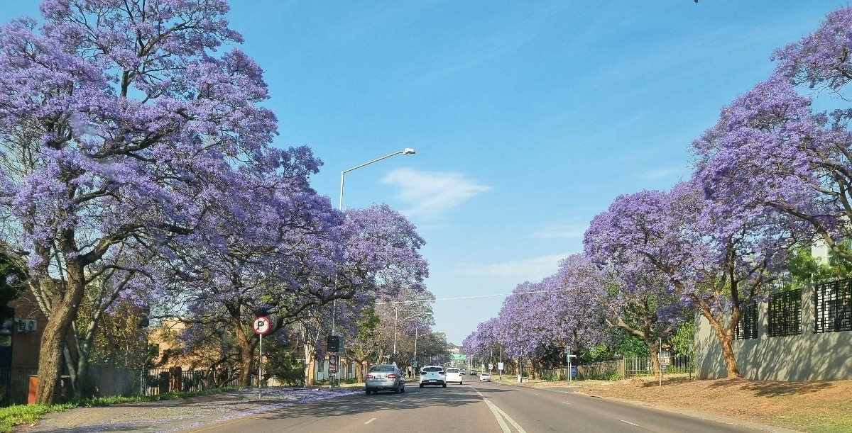 남아공의 봄, 어딜 가도 가로수를 덮은 보라색 자카란다가 황홀경까지 느끼게 만들어준다.
