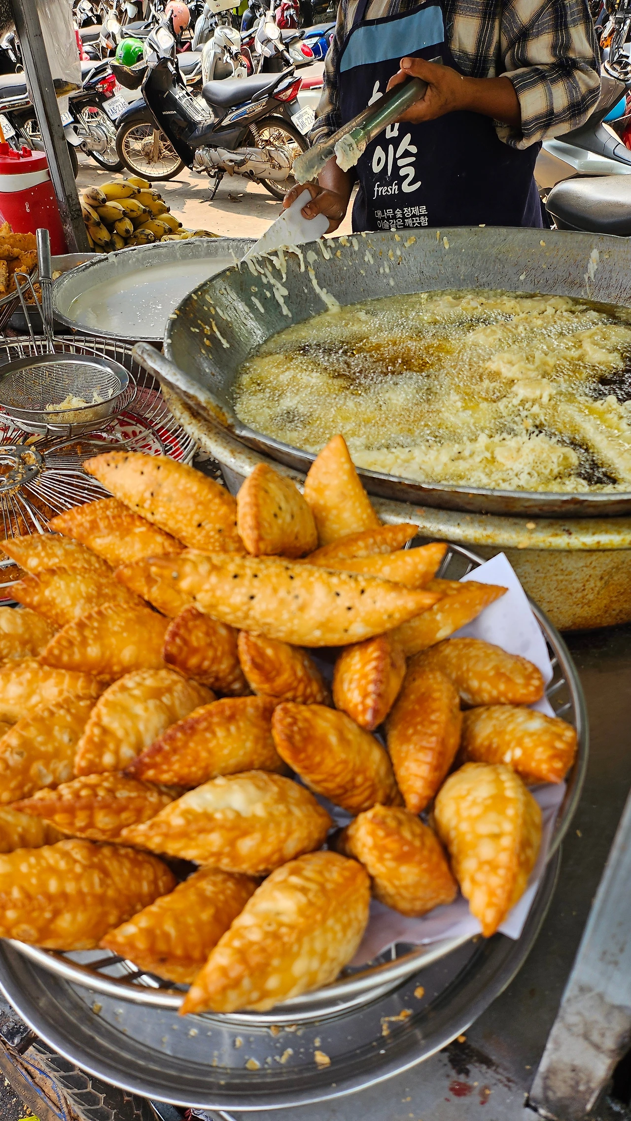 돼지고기 꼬치구이는 시장 가는 길목의 모퉁이에서 아저씨가 매일 굽고 있다. 데리야키 소스에 재운 얇은 돼지고기를 꼬치에 구워서 판다. 역시 1 꼬치에 1000리엘. 다들 예상할 수 있는 맛이다. 아무렴 그냥 맛있다. 사실 혼자 10개도 먹을 수 있을 것 같다. 자주 가서 사 먹었더니 지나가면 이제 아저씨와 눈인사를 하는 사이가 됐다.