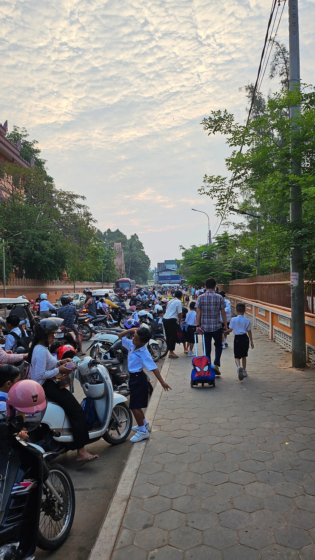 현지인들은 이미 분주하다. 거리 한편에선 캄보디아 아침식사인 놈반촉 쌀국수나 돼지고기 계란덮밥인 바이삿쯔룩을 먹는 사람들로 붐빈다. 오토바이에 가족 셋이 올라타 등교와 출근길을 서두르는 모습들. 이곳의 하루는 이렇게 시작된다.