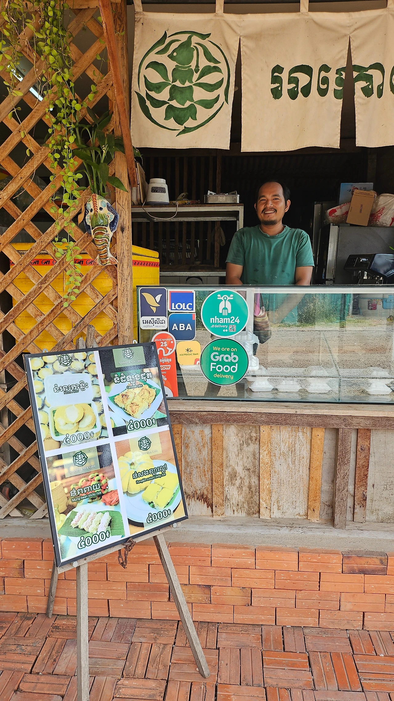 "와, 이 디저트 가게 진짜 좋았지. 그랜마스 디저트 가게. 팔고 있는 4가지 디저트 다 너~~~ 무 맛있었어. 특히 이 두 가지. 바삭하게 구운 코코넛 디저트와 녹두 디저트. 가게 이름에 할머니가 들어갔으면 우리 다 가보자."