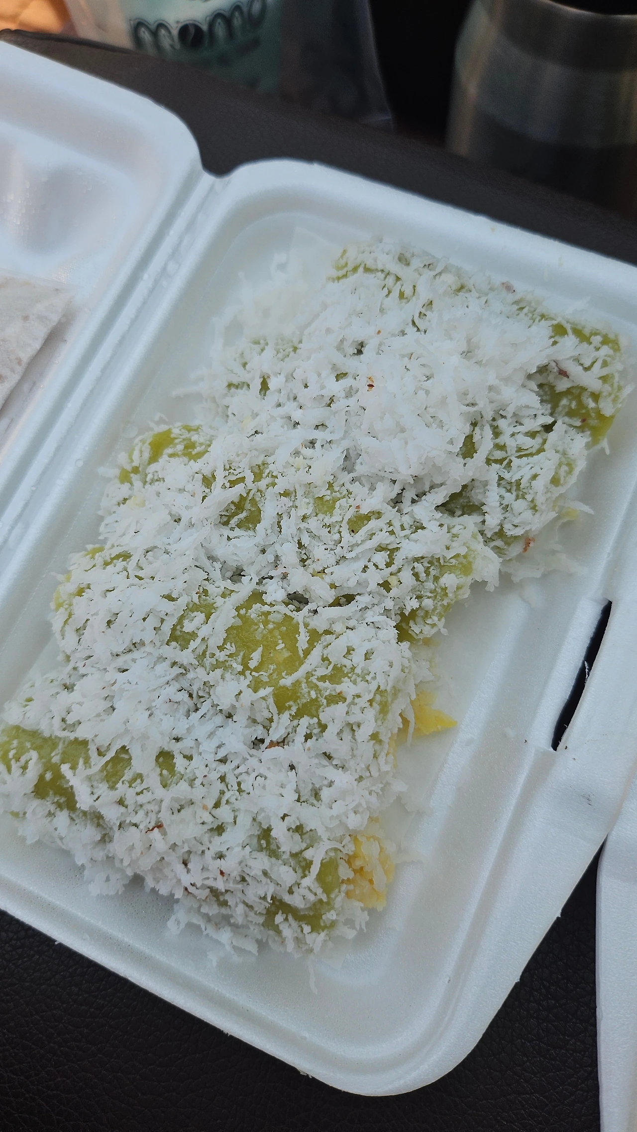 “맞아. 코코넛 플레이크 들어간 거야. 그럼에도 난 바나나 찹쌀밥이 가장 맛있었네. 나 그냥 코코넛 밀크로 만든 찹쌀밥은 다 좋아하는 거 같아. 쫄깃하고 적당히 달고 음~~"