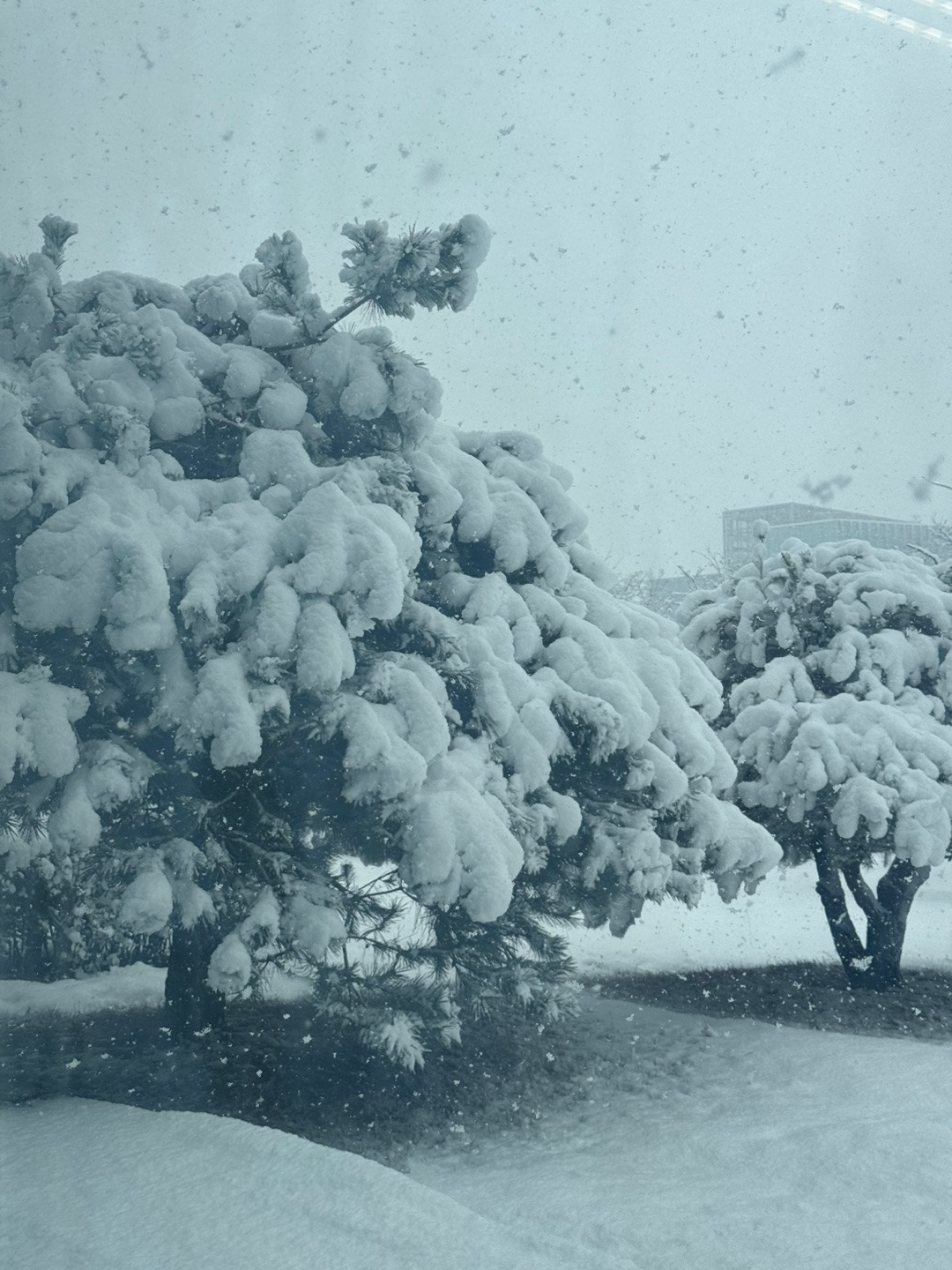 눈이 온다는 건 예보를 통해 알고 있었는데, 이렇게 하루종일 쉴 새 없이 내릴 줄이야. 출근길에는 마트에 파는 스노우트리처럼 소나무 위에 눈송이들이 수줍게 내려앉은 수준이었는데, 오후가 되니 소나무가 첫눈 등쌀에 못 이겨 구부러 지기 시작한다. 소나무는 청렴의 상징인데 잠들어 계시던 선비님들 놀랄 일이다.