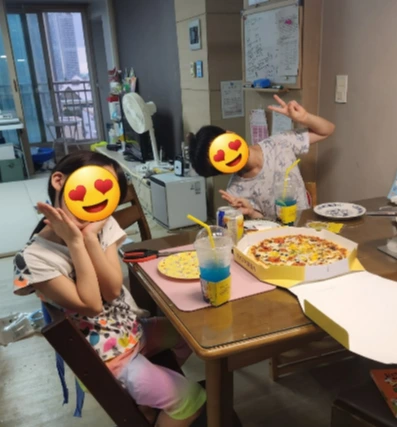 파티 목적은 난생처음 받아쓰기 시험 본 둘째에게 주는 응원이었다.