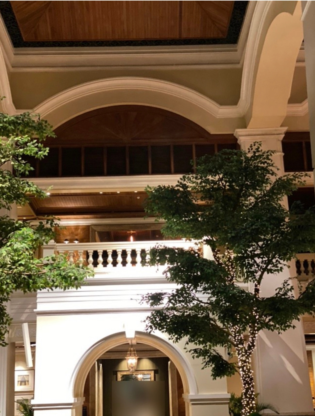 밤에 호텔에 도착해 로비로 들어서는데 울창한 나무에 바로크 양식의 건물이 아주 인상적이었다.