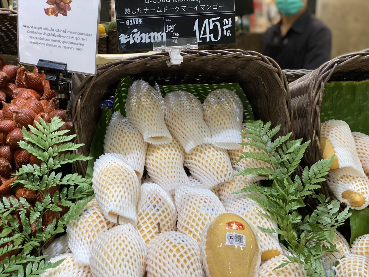 고메마켓은 서울의 SSG푸드마켓과 유사할 정도로 엄청 고급 마켓인데 망고를 145바트에 판매한다.